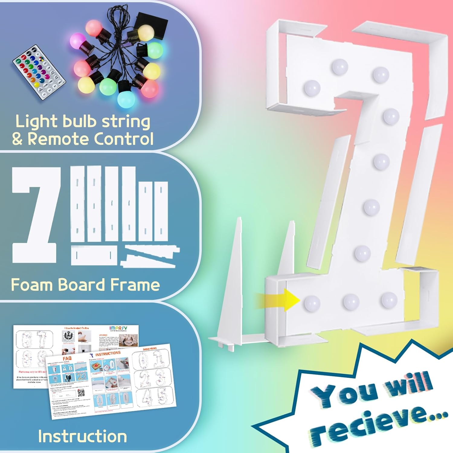 imprsv 4FT Colorful Marquee Numbers,18 Colors Number 7 with Remote, Light Up Numbers Sign for 70th Birthday Decorations Anniversary Party Decor, Pre-Cut Foam Board Kit, Mosaic Sign for Balloon