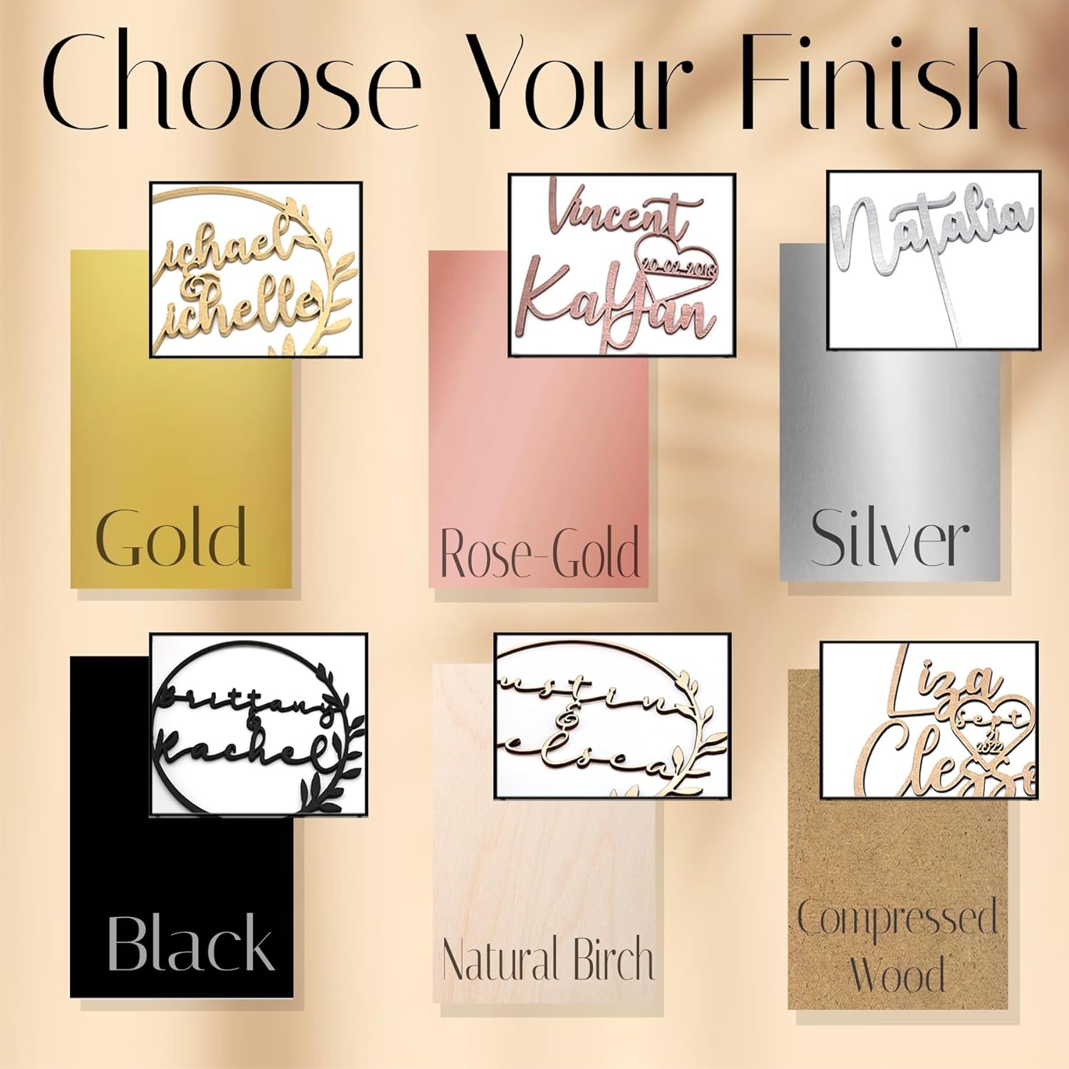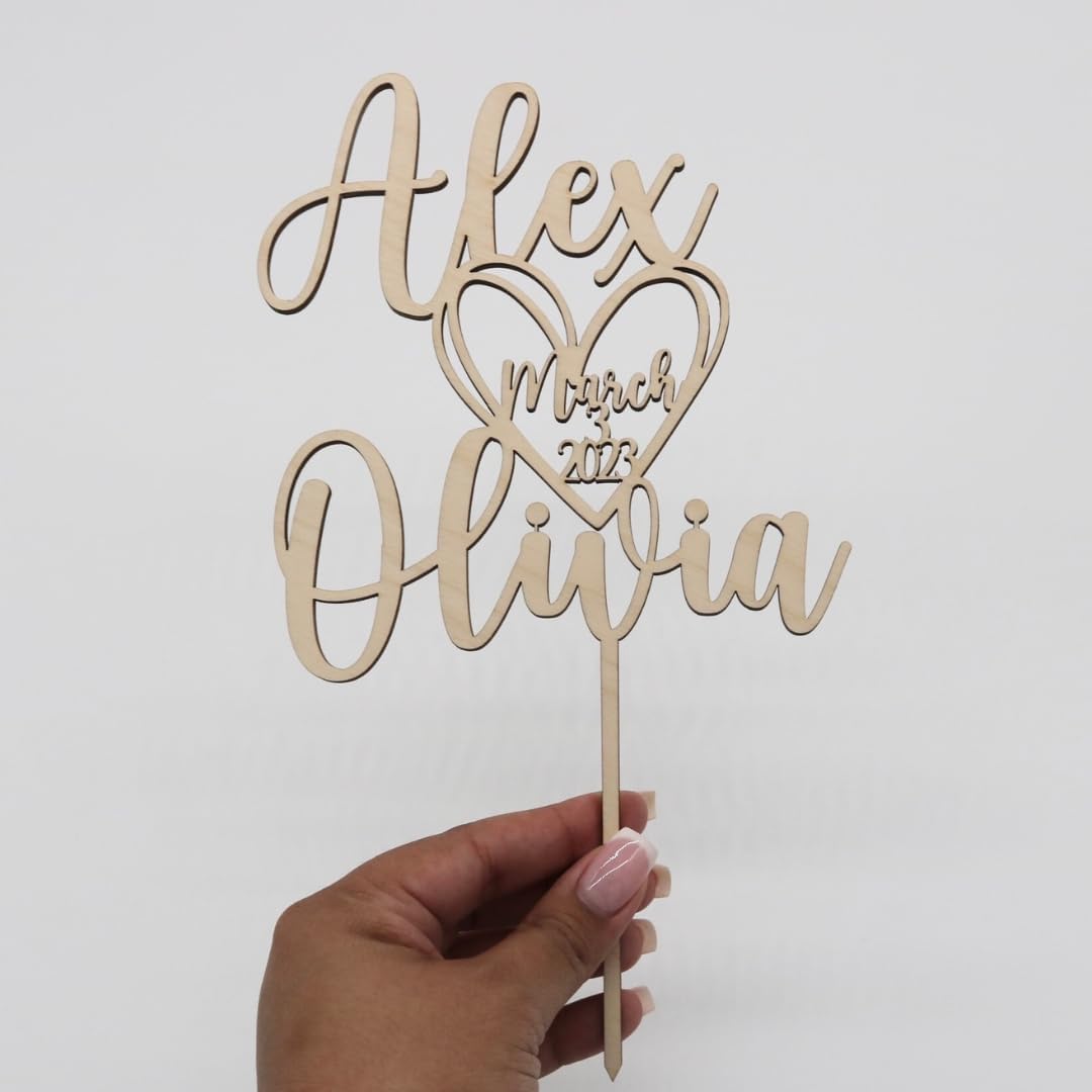 - Make your cake truly yours with a custom name cake topper, allowing you to showcase your names in a stylish way that guests will admire and remember.