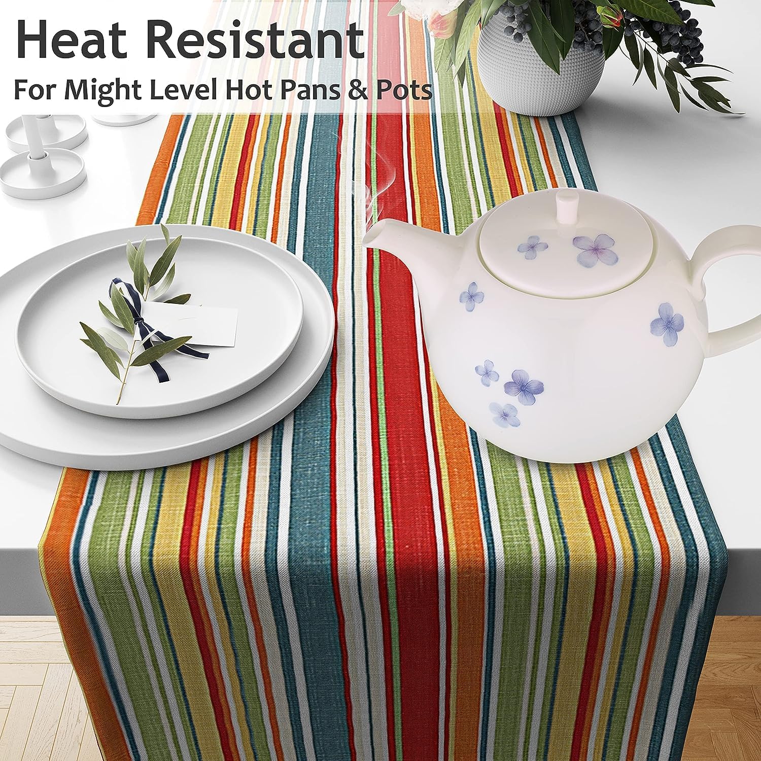 Ruvanti 100% Cotton Table Runner 120 Inches Long, Non-Slip, Stain Resistant, Washable & Reusable Table Runners Perfect for Wedding, Parties, Christmas, Holiday, in-Door use - Multi Stripe
