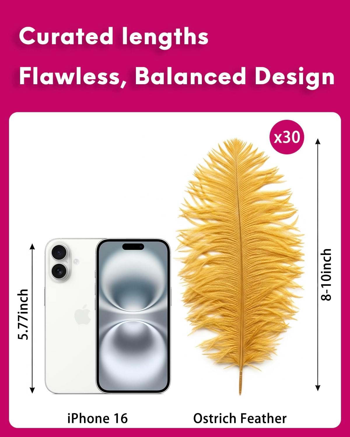 NEWONG 30pcs Gold Ostrich Feathers Natural Bulk 8-10inch(20-25cm) Vase Craft Wedding Home Party Centerpieces Christmas Day Decoration