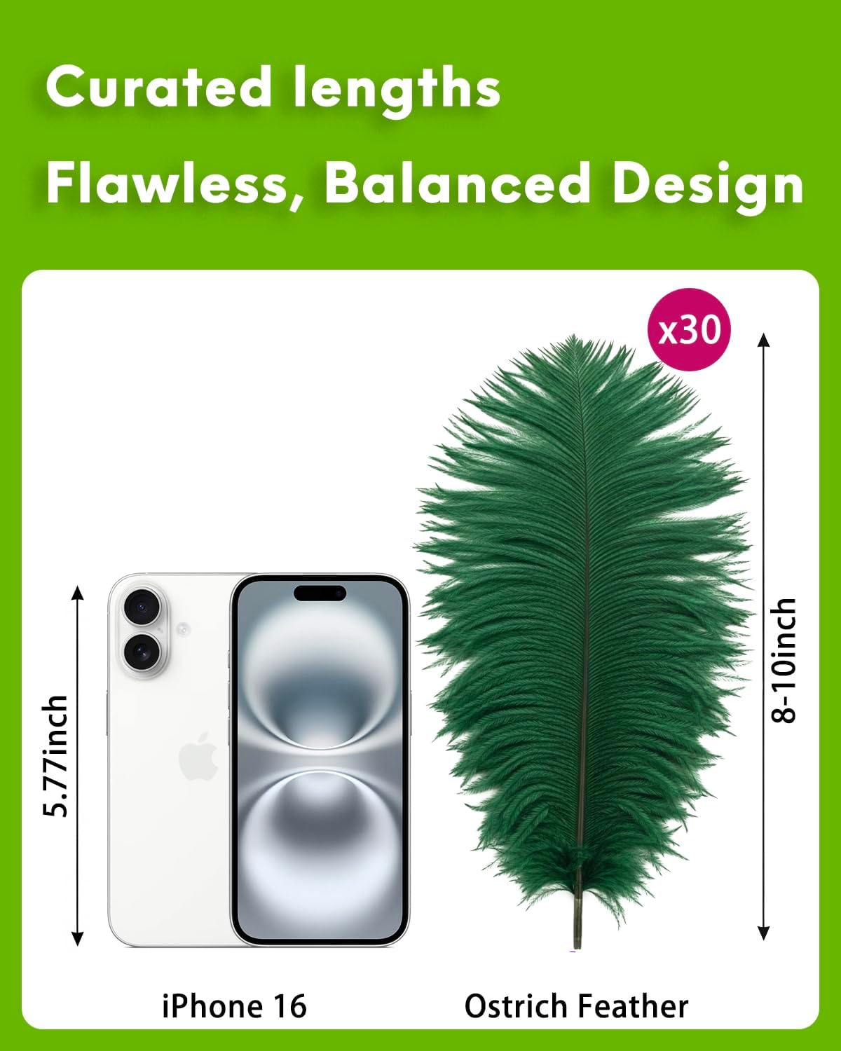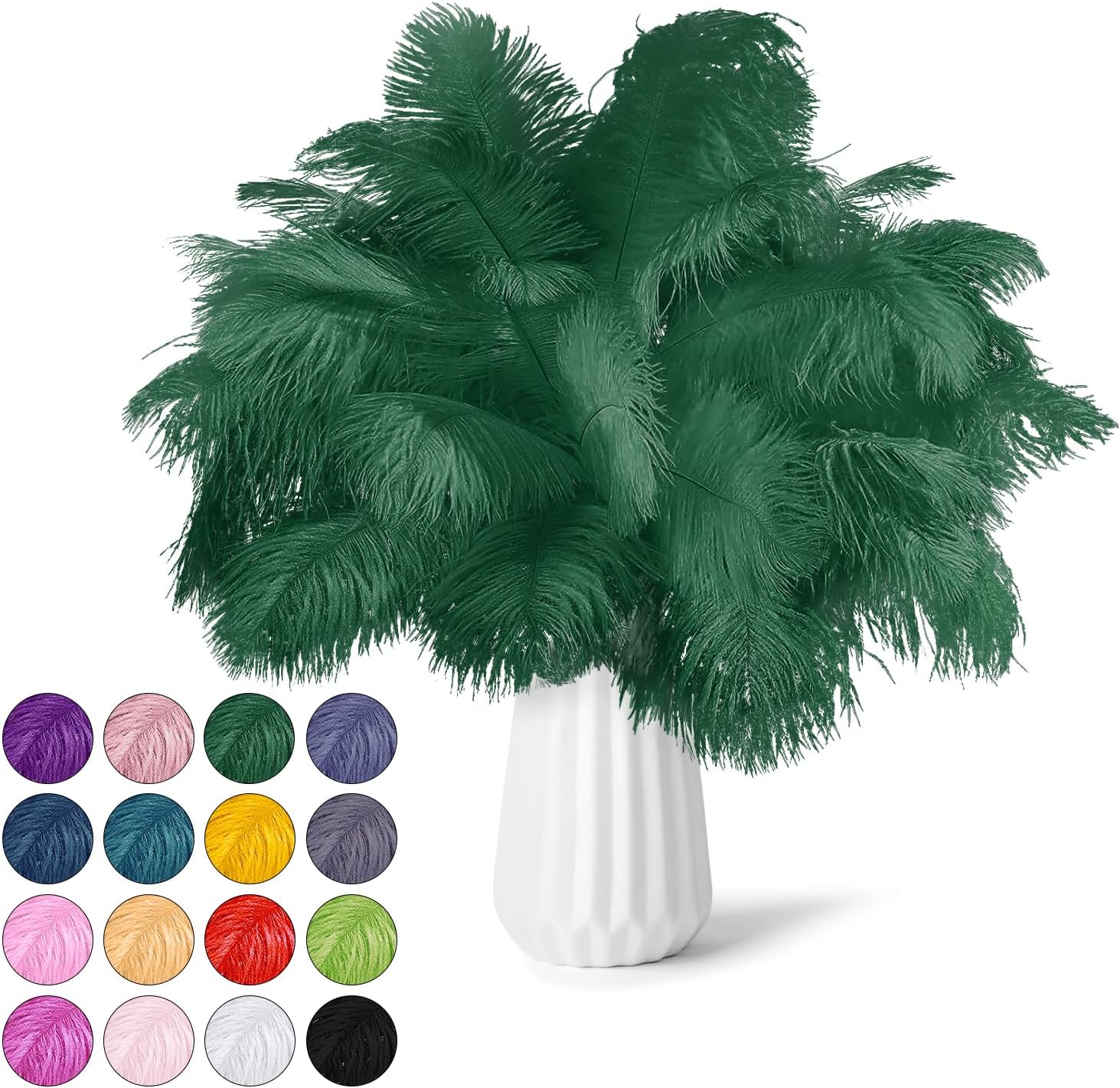 NEWONG 30pcs Dark Green Ostrich Feathers Natural Bulk 8-10inch(20-25cm) Vase Craft Wedding Home Party Centerpieces Christmas Day Decoration