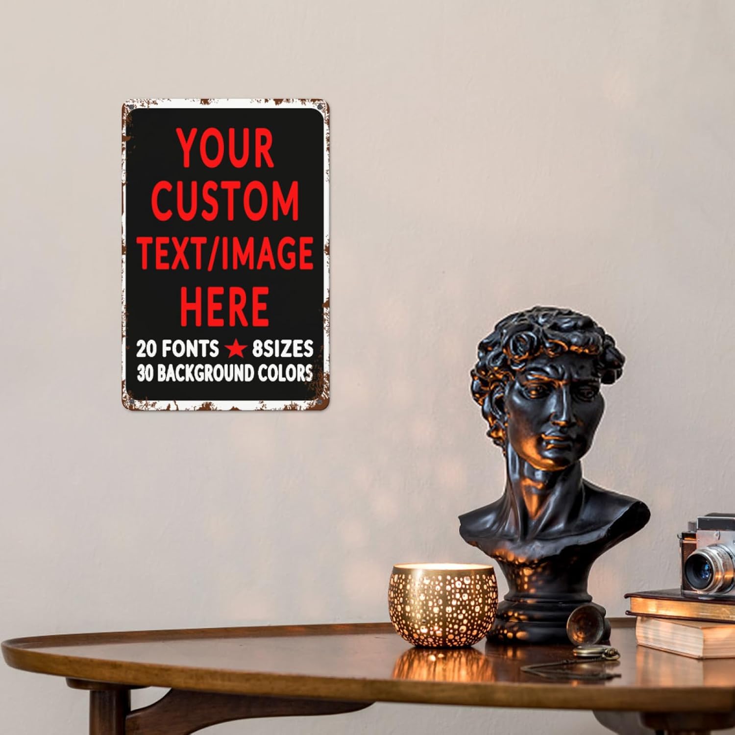 - CUSTOM YOUR OWN PERSONALIZED METAL SIGNS - By Upload Your Image Or Text Or Logo! Please Start By Clicking "Customize Now" Button And Click "Browse" Button To Upload Picture,Also Your Can Select The Color Background, Type Your Text You Can Choose The Typeface And Text Color.