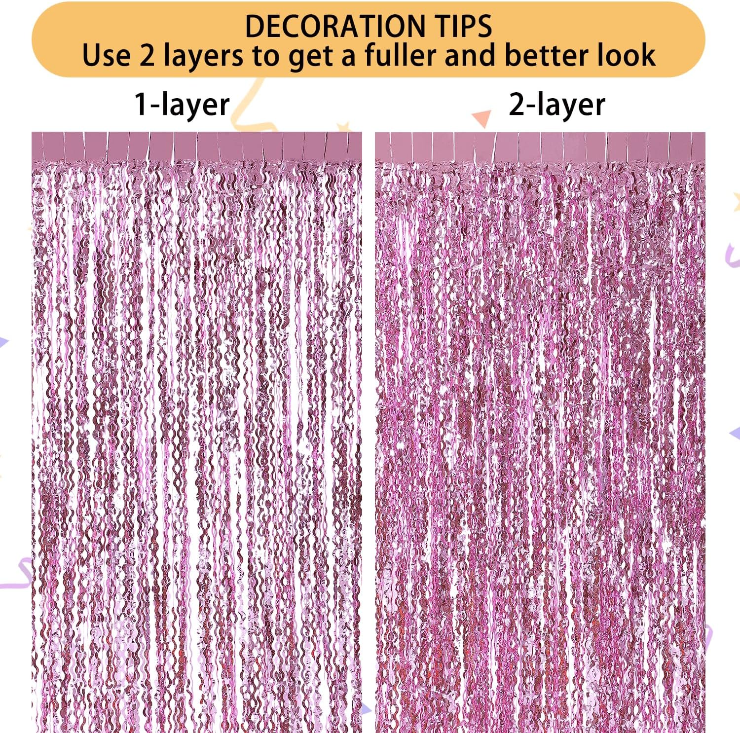 - Wavy Shape: Pink tinsel curtain have special wavy shape and shining smooth metallic surface, which offer you a full texture that is appealing to the eye, can help you enhance your party atmosphere, adding color and spicing up your party events