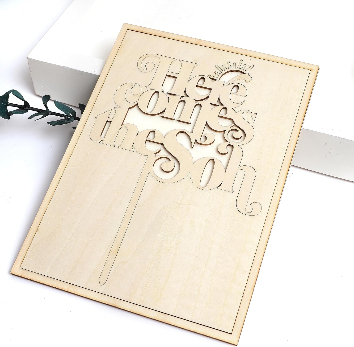 Here Comes the Son Cake Topper - Baby shower for Wooden Party Decor,Boho Photo Booth Props,Summer Sea Theme Birthday Party Surprise Decorations,You Are My Sunshine Cake Topper (Here Comes the Son)