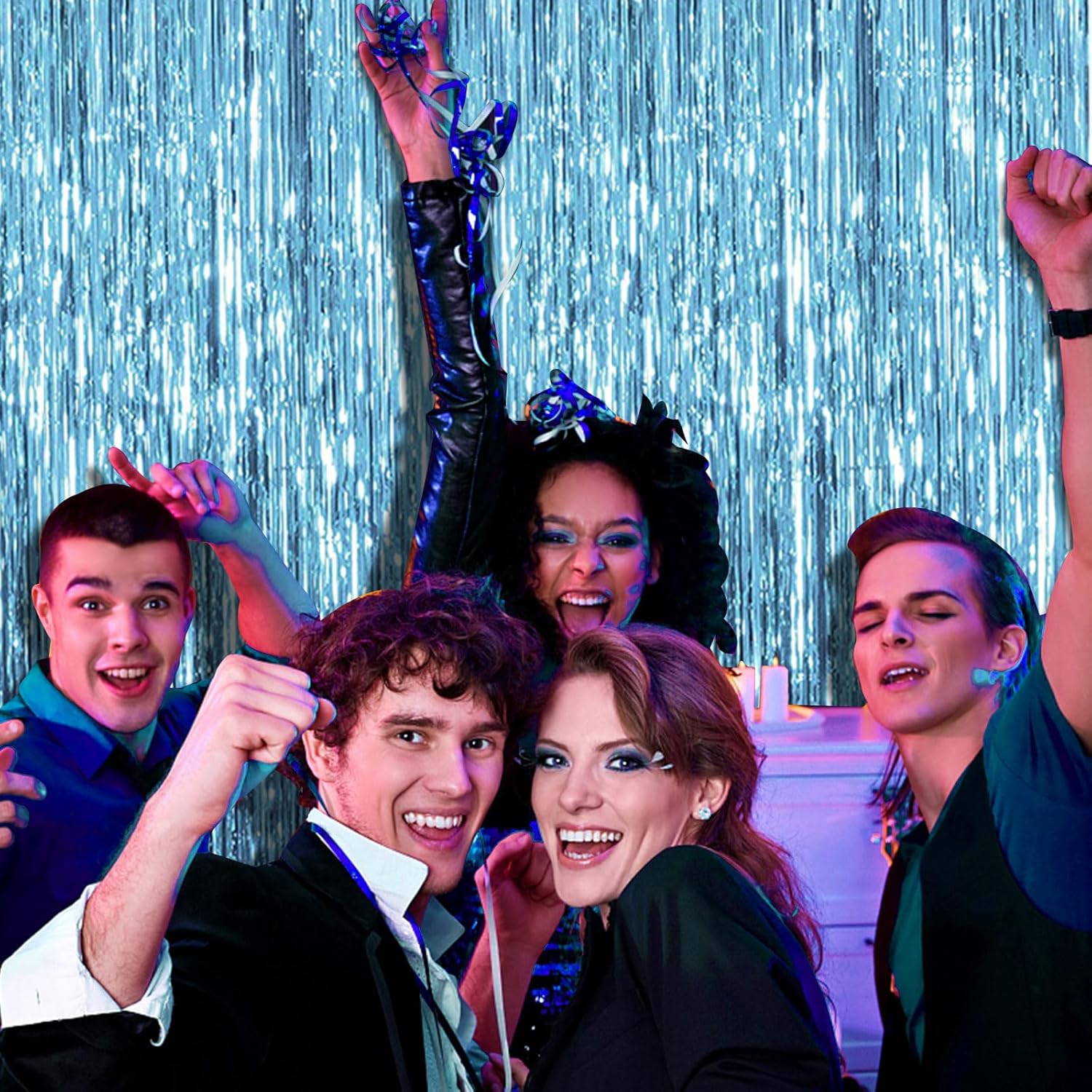 - Party Streamers Backdrop: 2Packs/Set, each pack curtains size is 3.28 ft x 6.56 ft, enough length foil fringe backdrops are perfect for the door or wall to create an impressive decoration for parties, events, and photo booths. Create your own party decorations now!