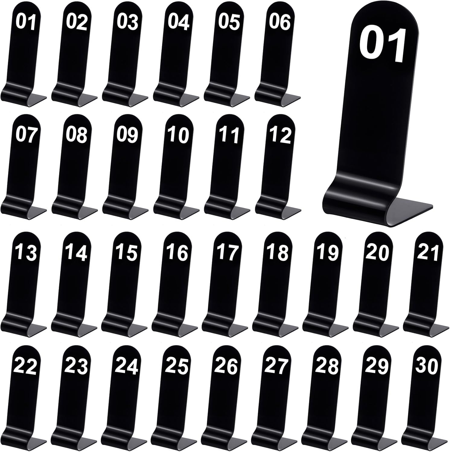 - Table Number Set: there are 30 pieces of acrylic table numbers are included in the package, numbered from 1 to 30; Sufficient quantities and matched numbers are able to meet your wedding, restaurant or daily use needs