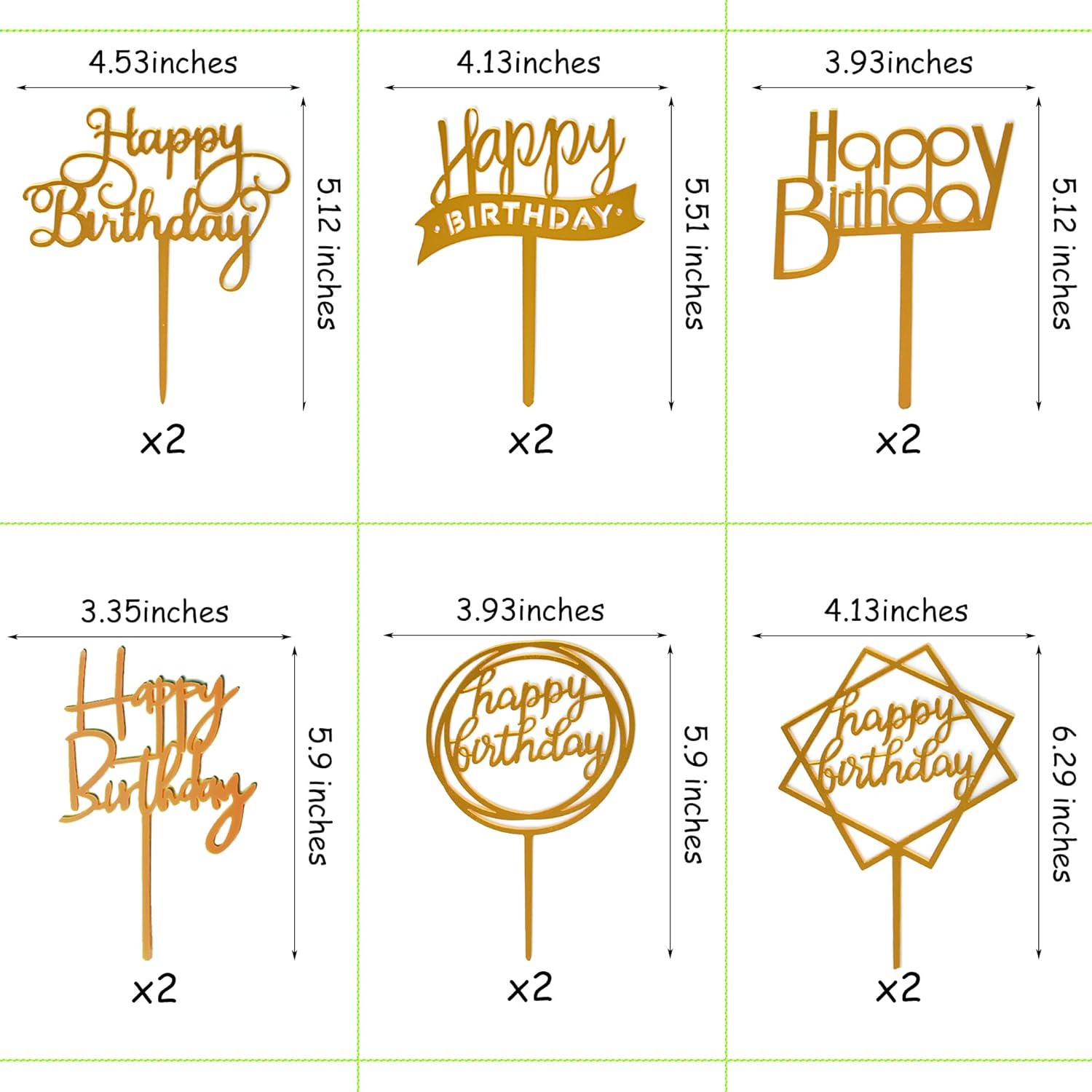 - Size: The Happy birthday cake toppers’ height is approx.5.1 - 6.3 inches, the width is approx. 3.4 - 4.5 inches. Ideal for 6-10” cakes.