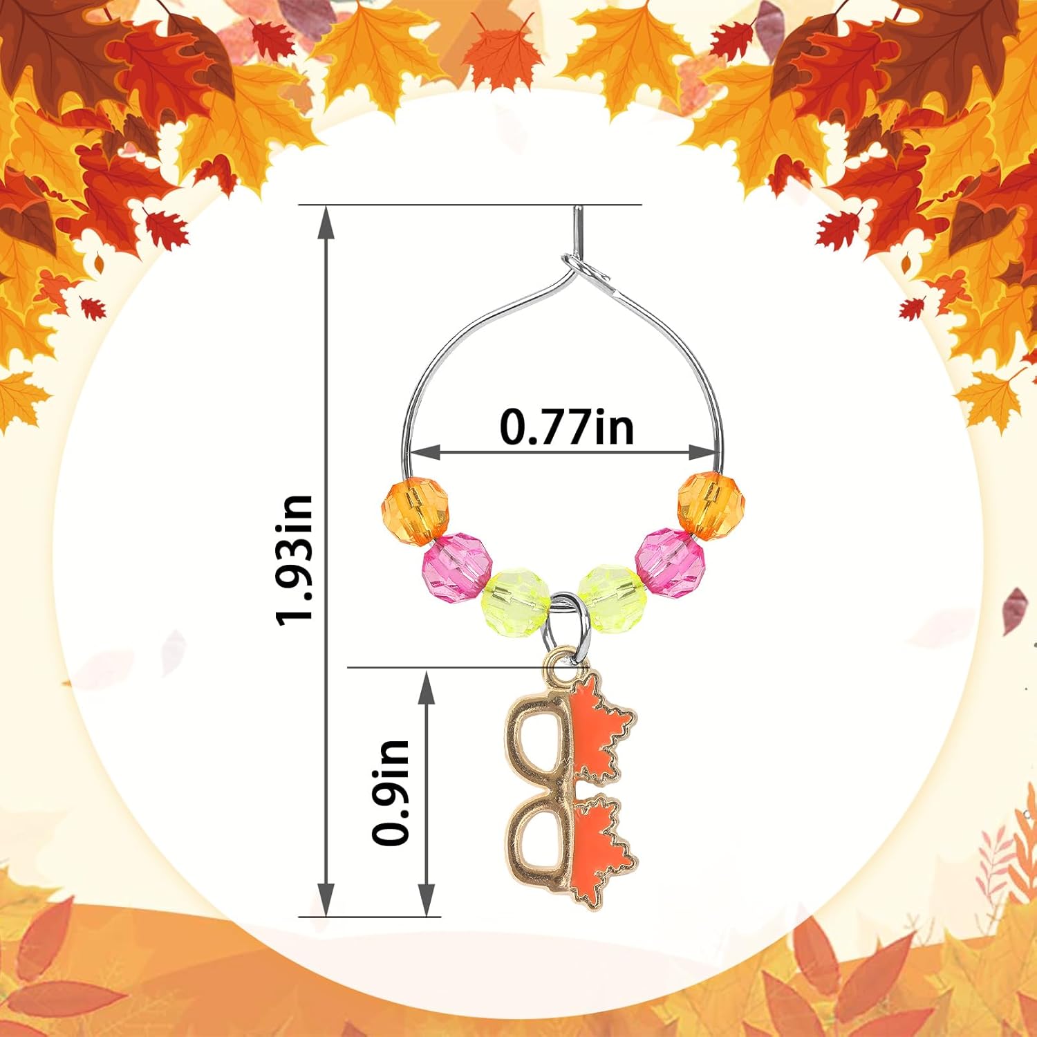 - [Size] - The size of the Thanksgiving charms is about 1.7 to 2.1 inches, and the diameter of the wine glass hanging hoop is about 1 inch,appropriate size, easily attach to the wine glass
