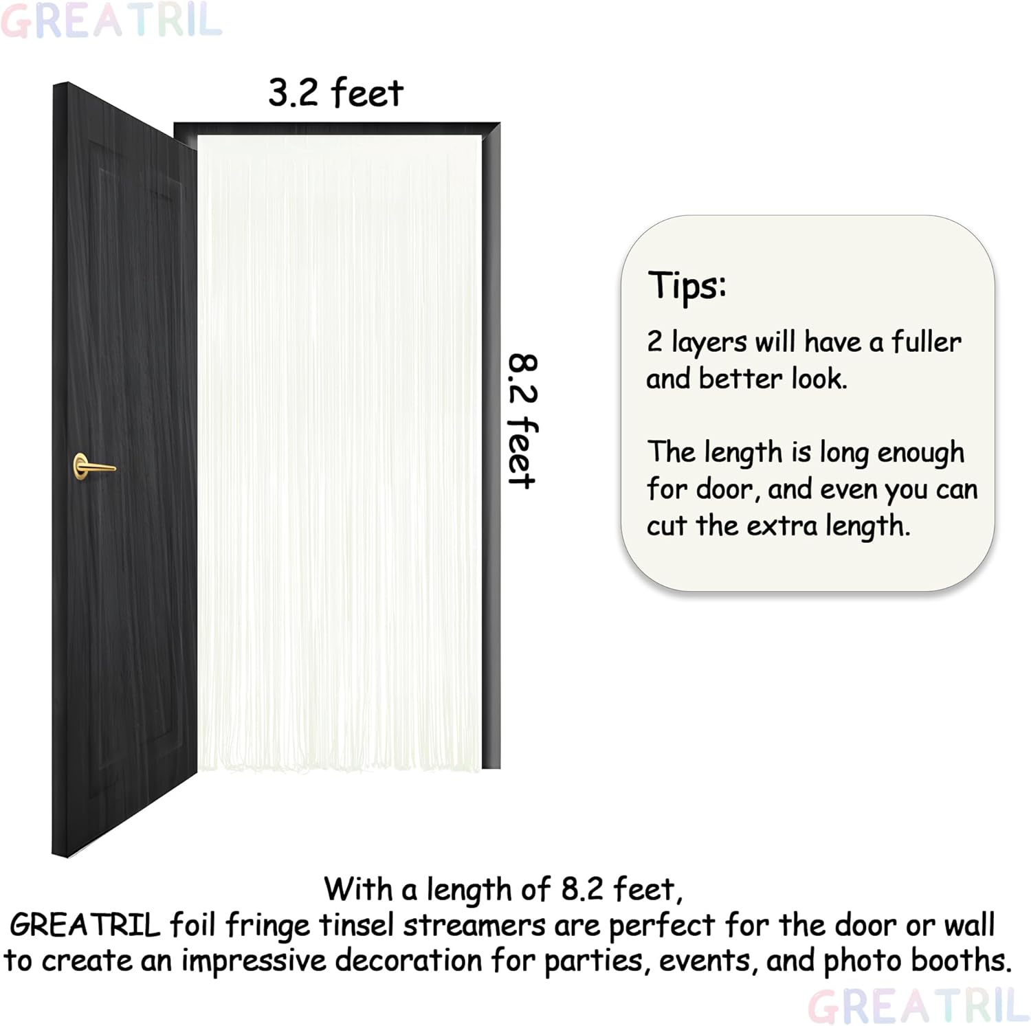 White Party Streamers Decoration - GREATRIL Foil Fringe Backdrop for Daisy Groovy Birthdays/Anniversary/Graduations/Bridal Shower/Cocktail/Prom/Gala - 3.2ft X 8.2ft - 2 Packs
