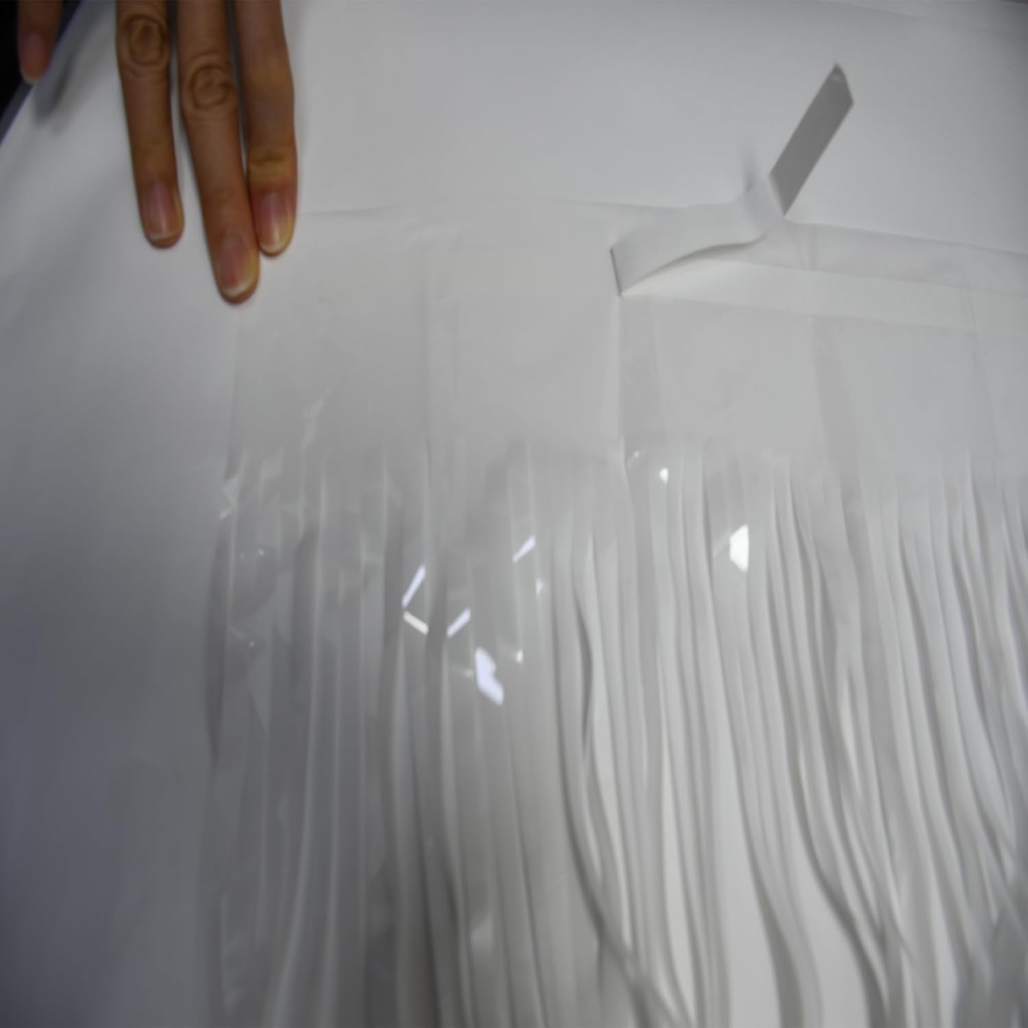- The top of white foil fringe curtain is covered with double-sided adhesive tape, eliminating the need for push pins or tacks that could damage walls. Perfectly stay in place for the duration of indoor or outdoor party decorations.