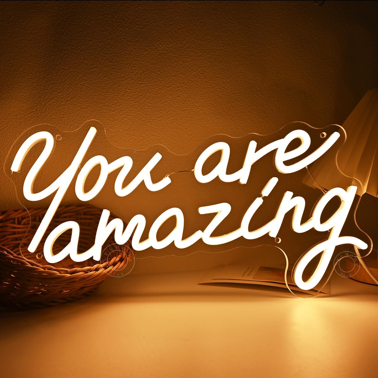 SYLHOME You Are Amazing Led Neon Light Sign Girls Bedroom Kids Room Wall Decor Sign Wedding Birthday Christmas Graduation Party Sign Student USB 15.75" X 8.94" Warm