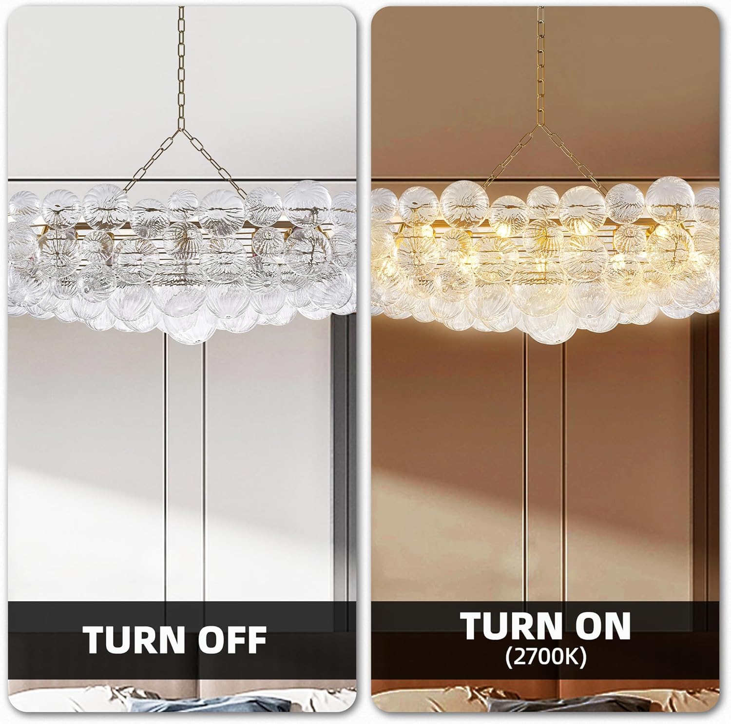 Nordic Bubble Ball Swirled Glass Chandelier 50 inch Rectangular Island Light Fixture Gild Gold and Clear Blown Glass Lighting for Dining Table, Living Room