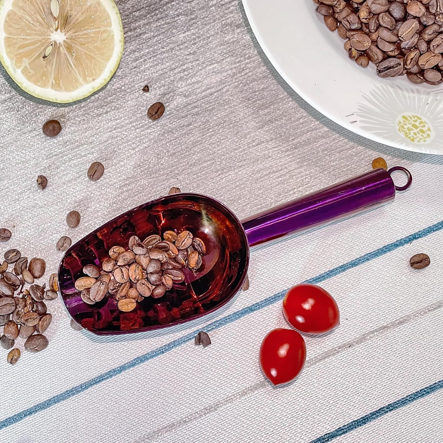 Metal Ice Scoop 3 Oz, Small Stainless Steel Ice scooper for Ice Maker Ice Bucket Kitchen Freezer Bar Party Wedding, Multipurpose for Coffee Bean,Flour Scoop,Dog Food Scoop (3 OZ-purple)
