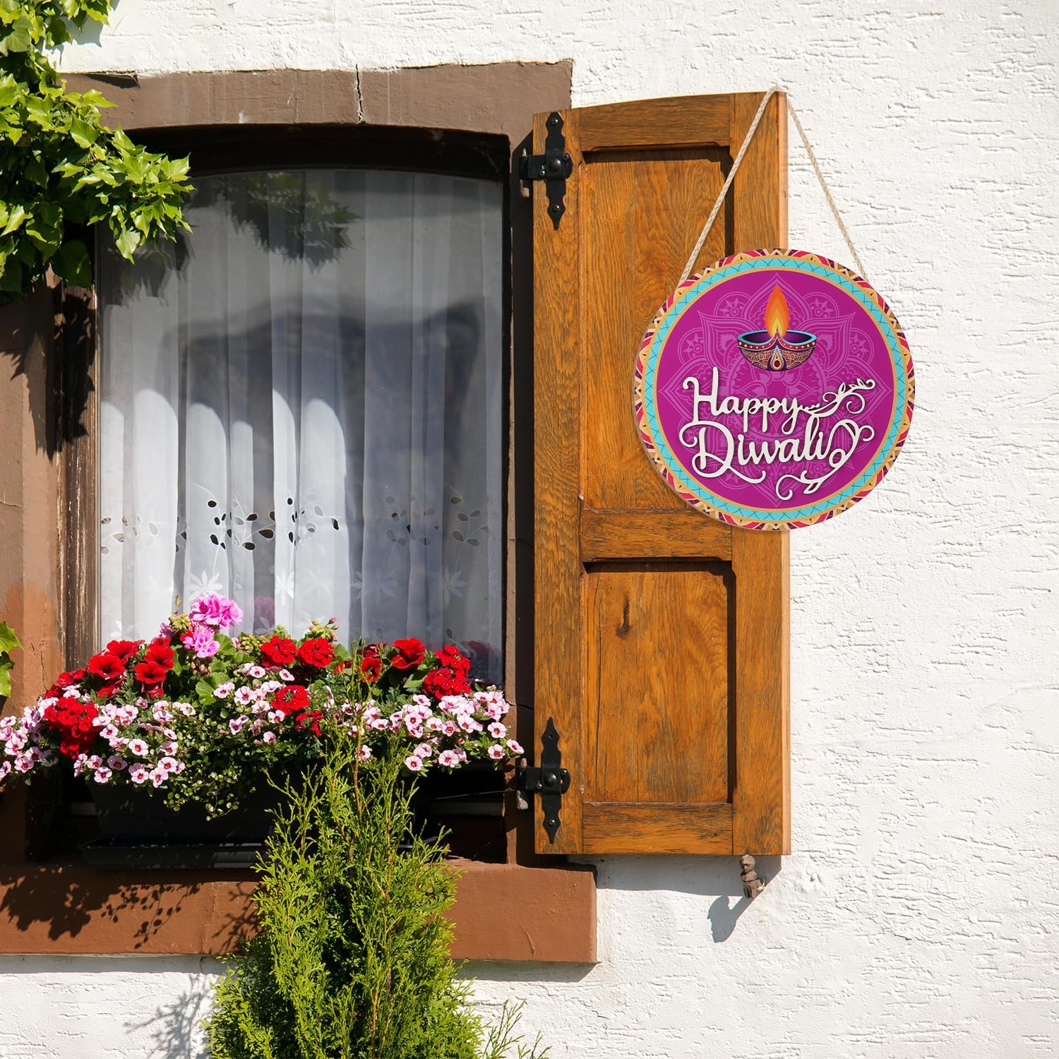- Deepavali Themed Door Hanger with Sophisticated 3D Design----Our diwali party front door sign features a 3D laser engraved design. The word “Happy Diwali” is 3D with a thickness of 3mm. Unlike the ordinary wood sign, this has a multi-layered visual effect.