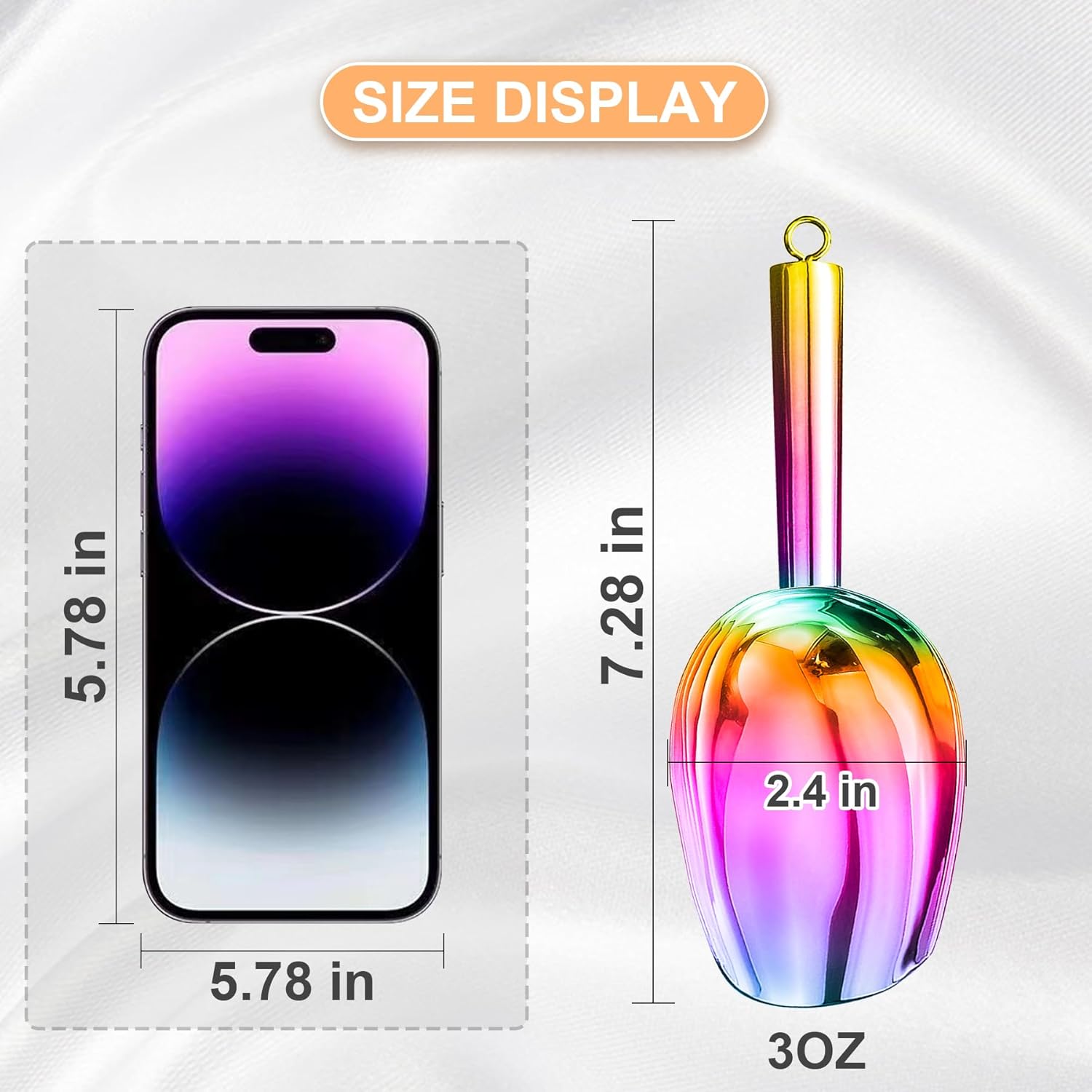 Metal Ice Scoop 3 Oz, Small Stainless Steel Ice scooper for Ice Maker Ice Bucket Kitchen Freezer Bar Party Wedding, Multipurpose for Coffee Bean,Flour Scoop,Dog Food Scoop (3 OZ-Rainbow)