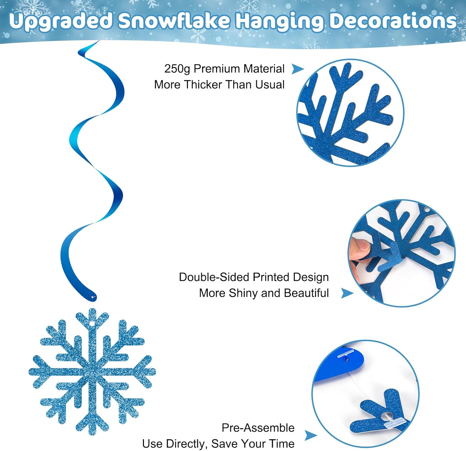 20 Pack Frozen Snowflake Hanging Decorations - Winter Snowflakes Hanging Swirls Ceiling Streamers, Glittery Snowflakes Ornament for Wonderland Frozen Party Decorations, Birthday and Christmas Decor