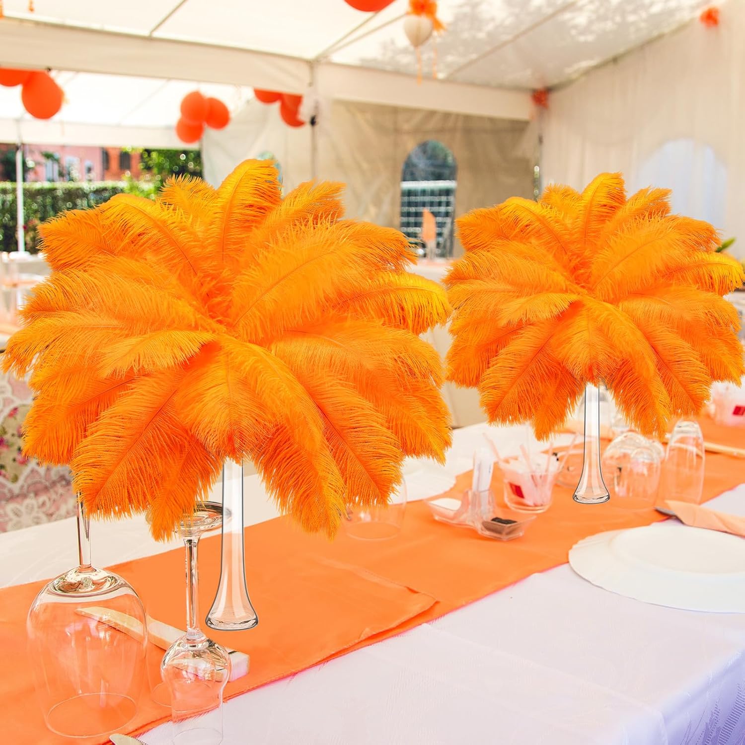 - Soft and Fluffy: the large orange feathers are made of quality natural ostrich feathers that fall off naturally, will not harm the ostrich are healthy, which are made through strict selection, adopting the process of cleaning, sanitizing and coloring, soft and smooth, lightweight and fluffy, which are exquisite materials for making crafts and ornaments