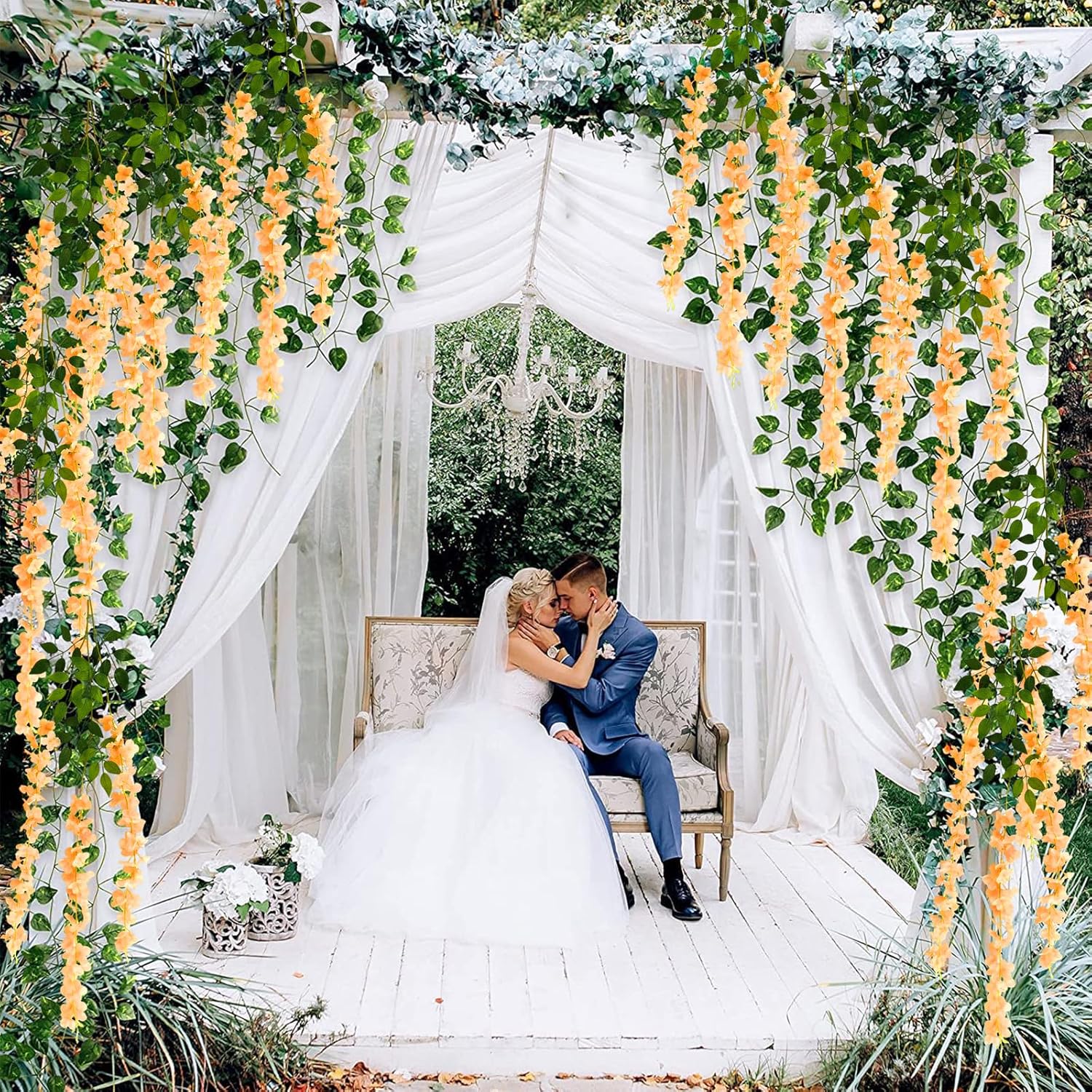 24 Pack Orange Wisteria Hanging Flowers Garland, 3.77 Feet Artificial Flower Vines, Fake Wisteria, Artificial Vines Hanging Garland for Backdrop Outdoor Yard Garden Decor