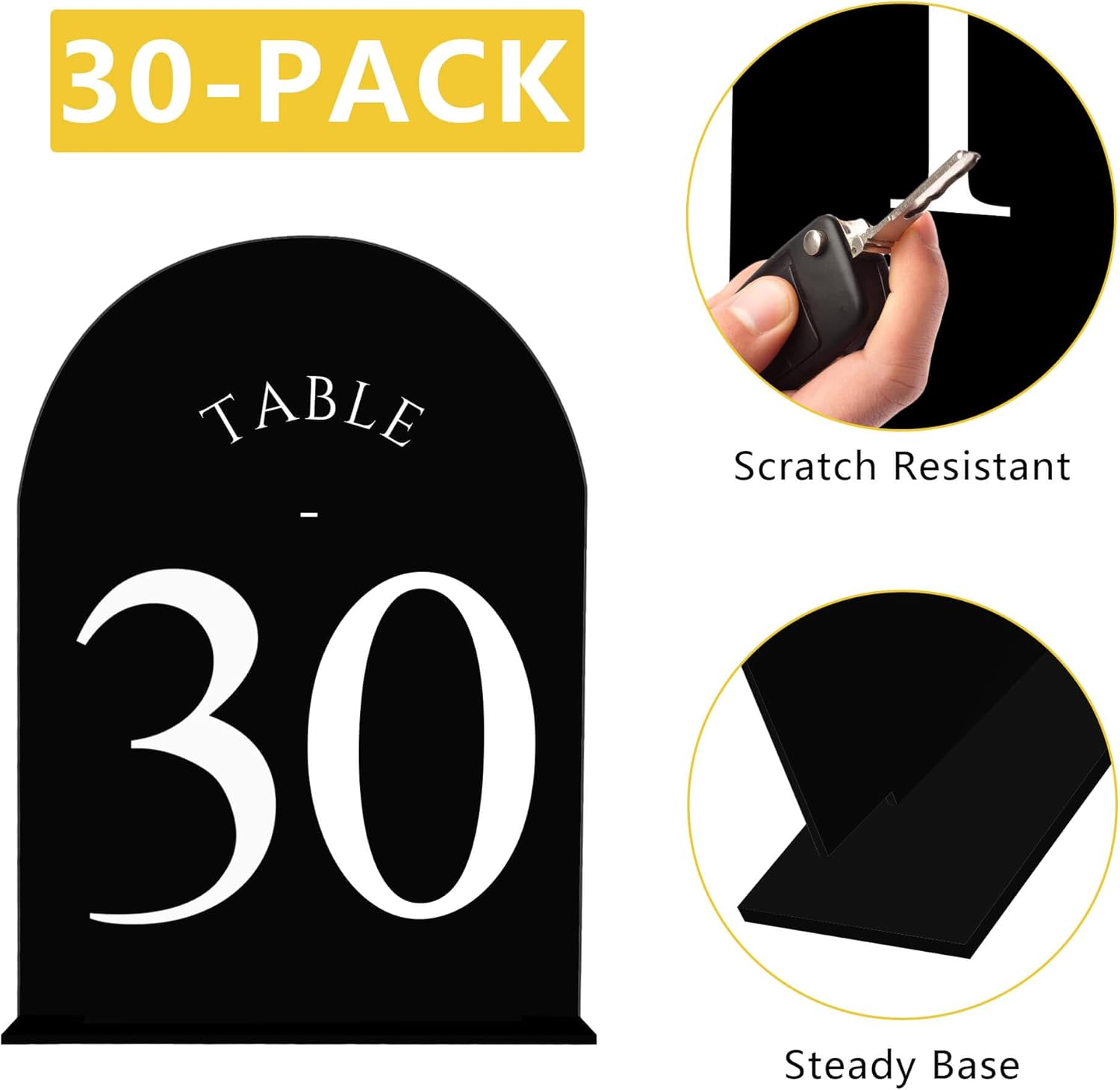 JOYIT Arch Wedding Table Numbers 1-30 with Stands – Double-Sided Printed 5" X 7" Acrylic Table Signs with Black Background White Text, Perfect Acrylic Table Numbers for Wedding Receptions, Parties, Anniversaries, and Events
