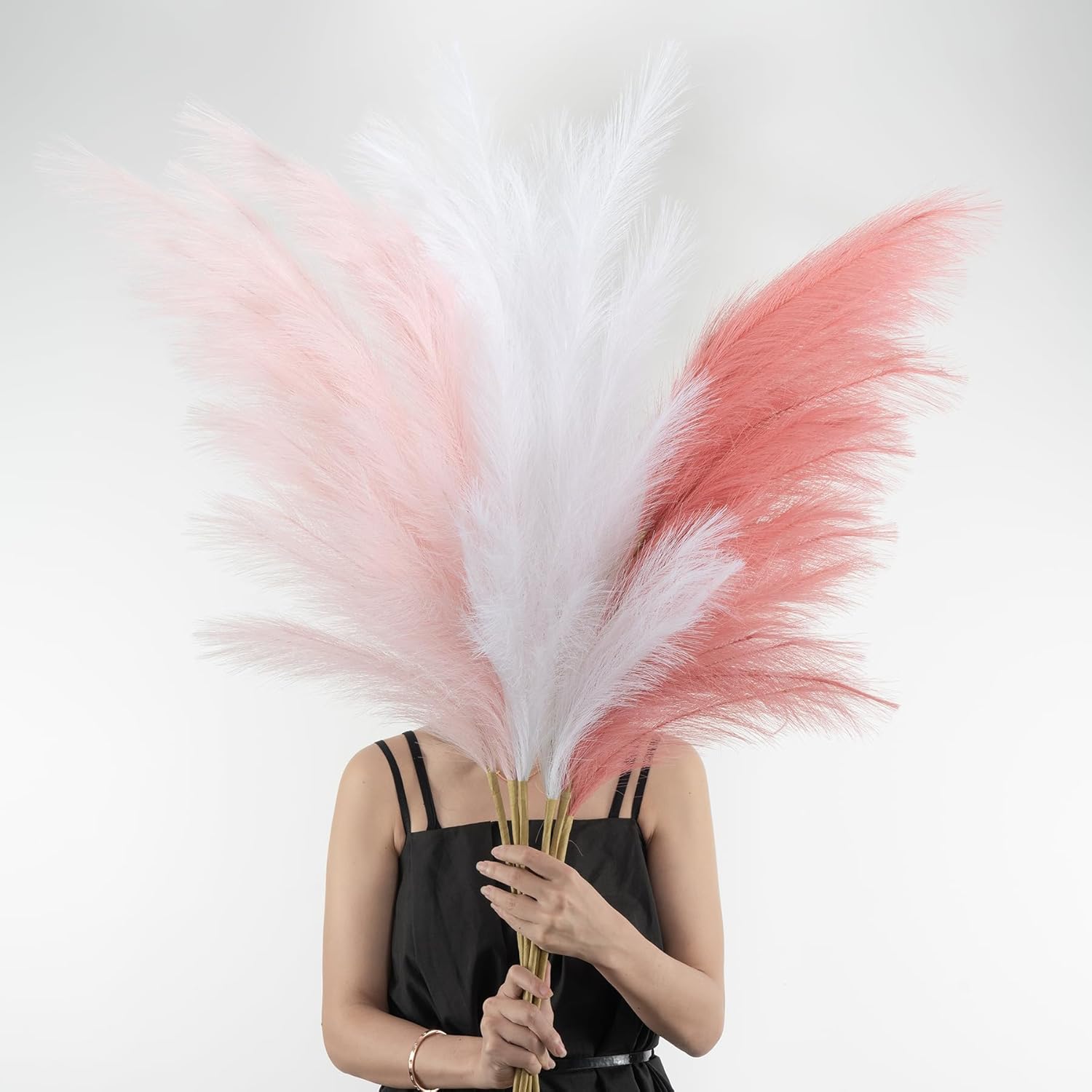 - Warm Color& Good Texture Pompous Grass: It comes with 6 long stems of extra fluffy and tall faux pampas grass They're nice and full and have a really impressive appearance, nicely with a variety of decorations! Packaging with box to avoid crushing during transit, hold their shape very well