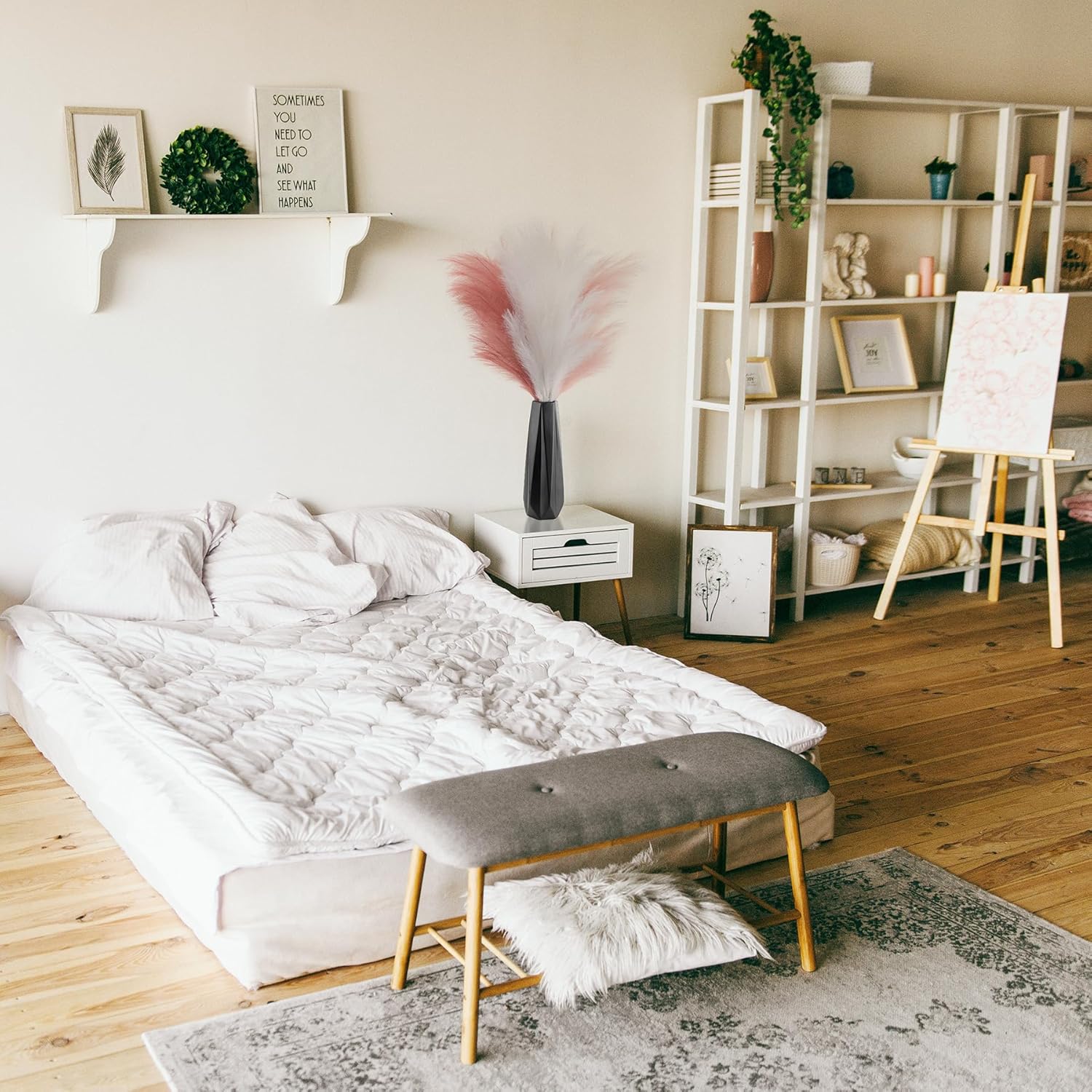 - Minimalistic&Elegant Pampas Grass Decor: Really nice faux pampas grass for home decor, display in your hallway, kitchen, living room, bedroom, front room, dining room, or entryway... any space. Pampas grass are also a great addition to weddings, flower arrangements, lifestyle photography, party, bohemian decorating and etc
