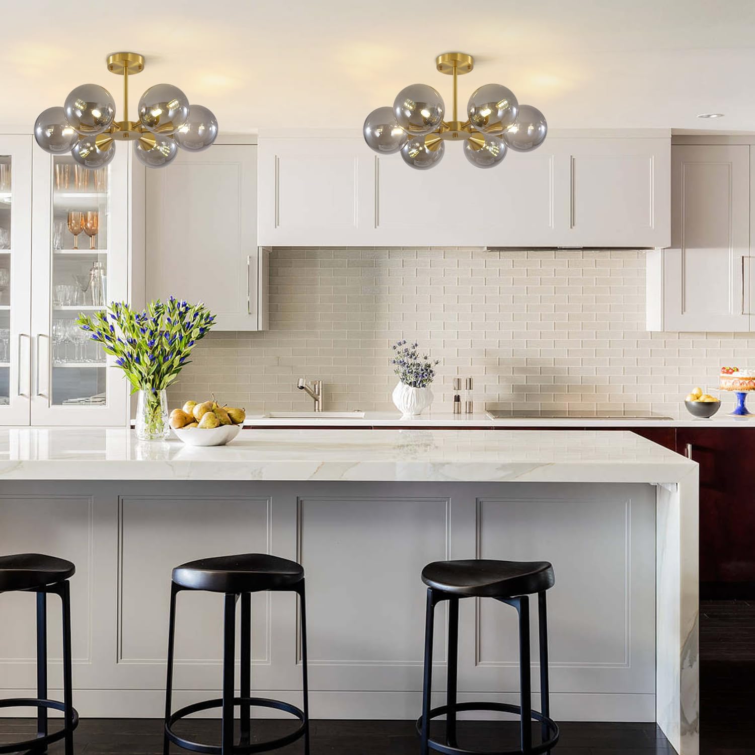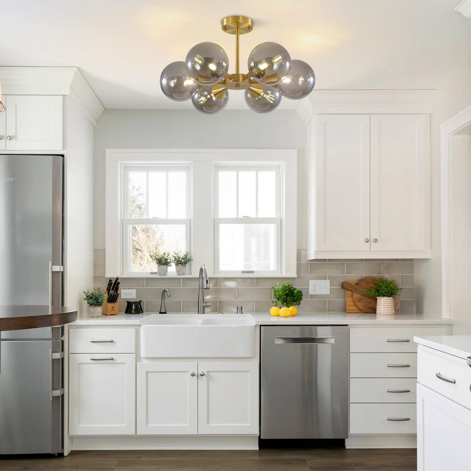 - Perfect for Low Ceilings & Easy Installation: 6-lights glass globe sputnik chandelier ceiling light removing the cumbersome design, semi flush mount can be easily embedded on most occasions, perfect fit with any ceilings, from high ceilings to low ceilings. The installation is super easy, just loosen the lock ring and finish lamp body installation, then rotate the glass globe to finish the lampshade installation