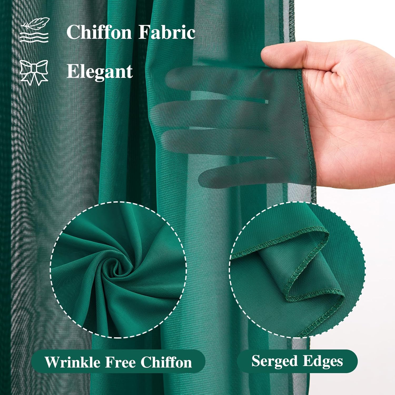 Wedding Arch Draping Fabric,2 Panels 18FT Emerald Green Sheer Chiffon Curtain Drapes 6 Yards for Wedding Ceremony Birthday Party Decoration