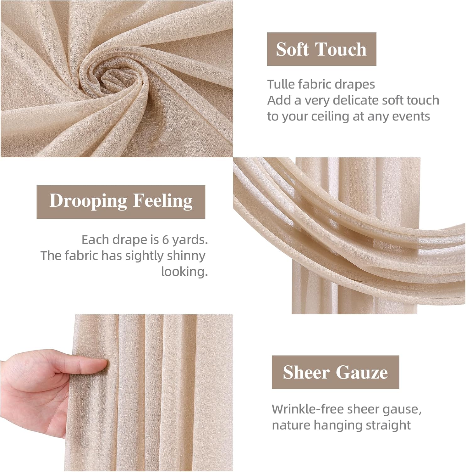 - Best Choice Wedding Arch: Champagne sheer arch drapes are good choice for your wedding decor. Romantic arch fabric will help to create beautiful folds or leave it flowing loose onto the floor, adding a very delicate, soft touch. Best wedding decoration gift.
