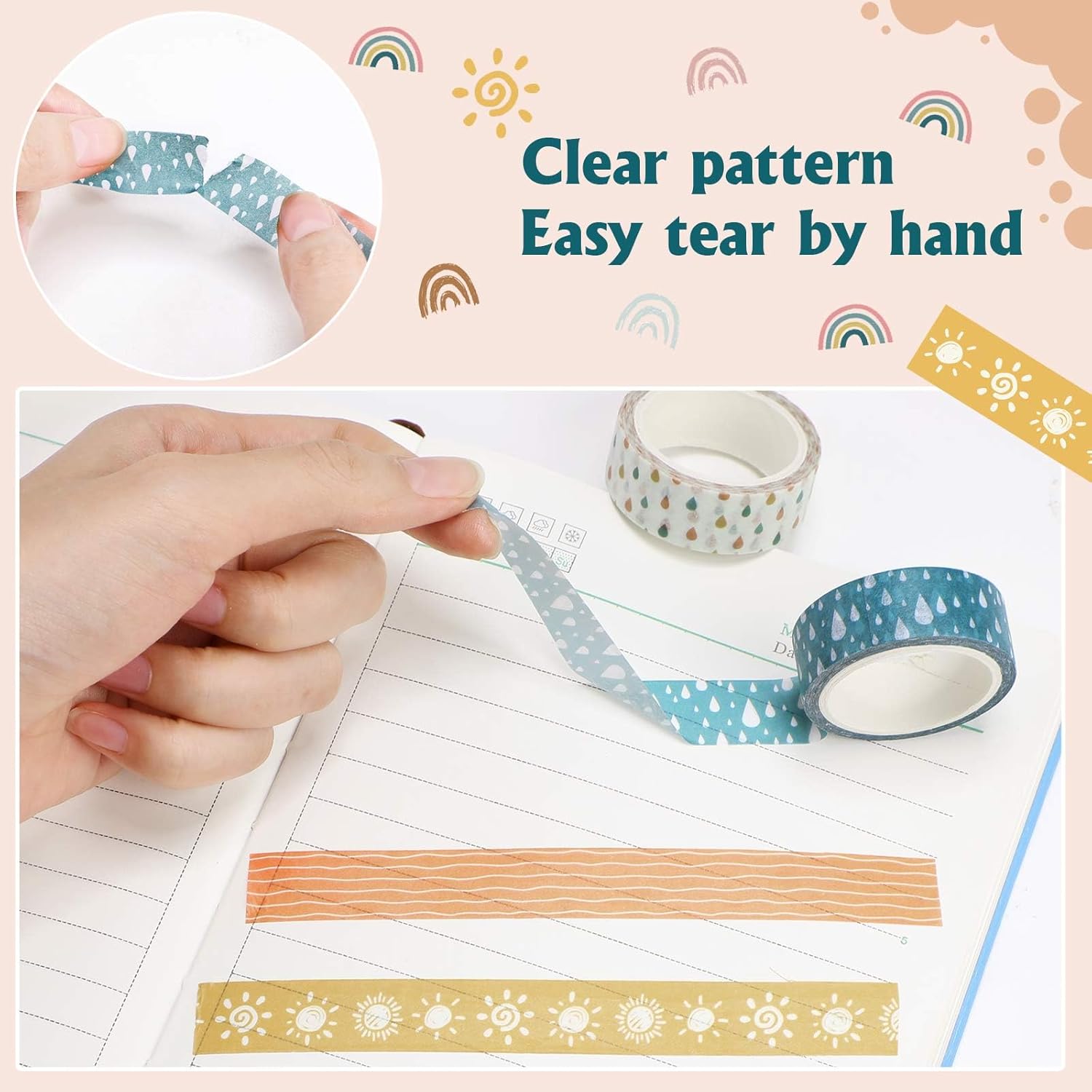 - 33 Classic Elements for Sharing: you will receive 33 rolls of bohemian plaid Washi tapes in 33 patterns, including raindrops, sun, polka dots, hearts, stripes, clouds, waves and other elements, classic in design and rich in quantity, sufficient to meet your various tape needs
