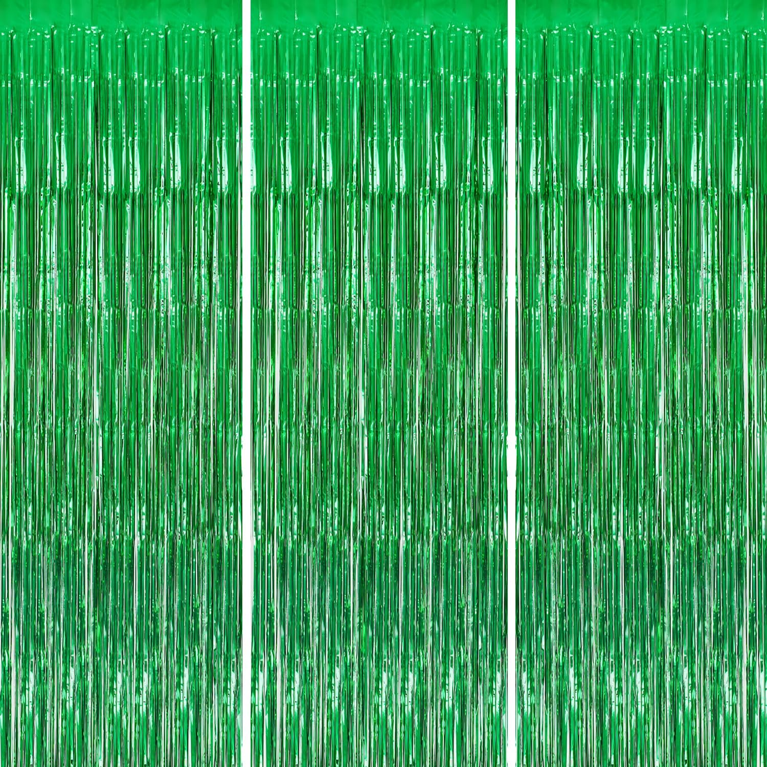 3 Pack Foil Fringe Backdrop - Green Shiny Tinsel Curtains for Party Decoration/Photo Booth Props - 3.3x8.2 FT Metallic Foil Backdrop for Birthday, Wedding, Graduation, Christmas.