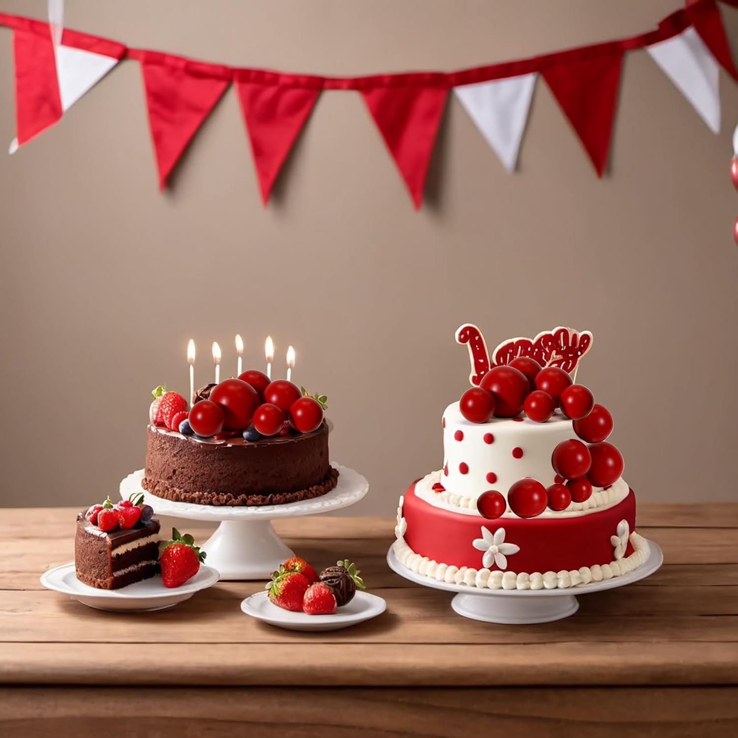 - Package includes: 20 pcs red ball cake decorations. The diameter of these ball cake toppers are 0.79 inch/ 2 cm, 0.98 inch/ 2.5 cm, 1.18 inches/ 3 cm, 1.57 inches/ 4 cm, 5 pieces of each size.