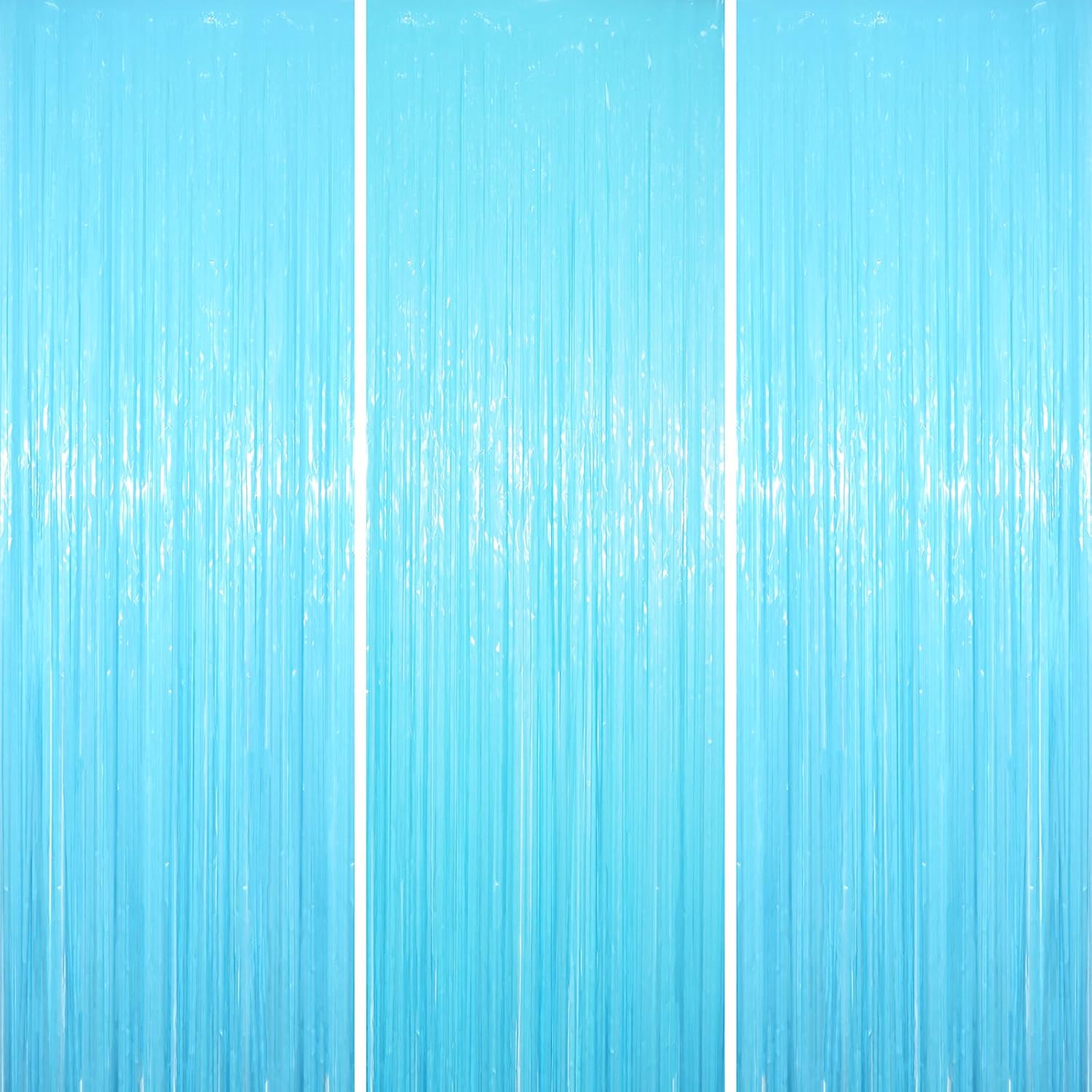 3 Pack 3.3 x 8.2 ft Pastel Blue Foil Fringe Backdrop Curtains, Tinsel Streamers Birthday Party Decorations, Fringe Backdrop for Graduation, Baby Shower, Gender Reveal, Disco Party
