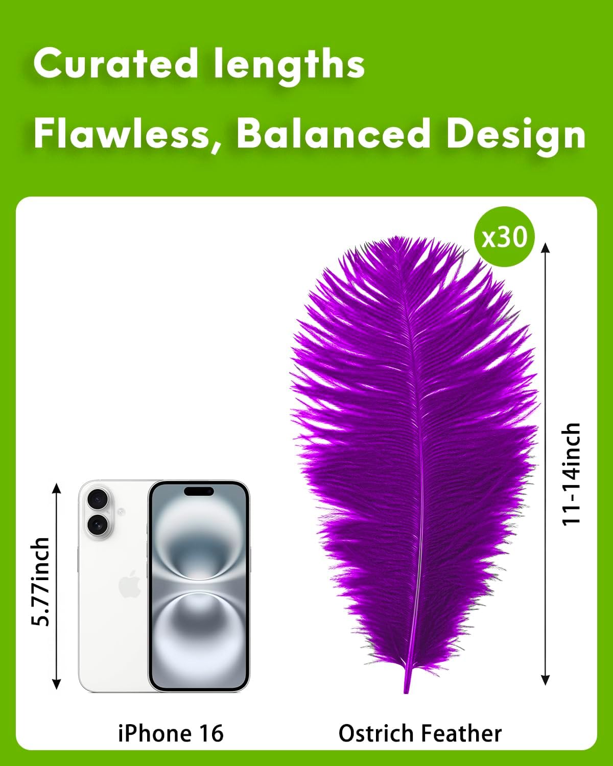 NEWONG 30pcs Purple Ostrich Feathers Natural Bulk 11-14inch(28-35cm) Vase Craft Wedding Home Party Centerpieces Christmas Day Decoration