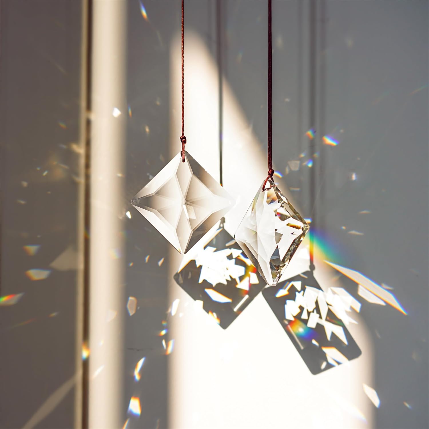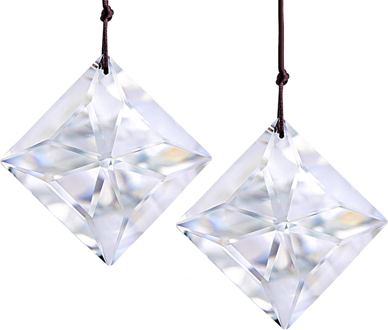 HDCRYSTALGIFTS 2PCS 50mm Clear Crystal Sun Catcher Prisms, Hanging Suncatchers with Glass Prism, Rainbow Maker for Windows, Balcony, Kitchen, Garden Decoration