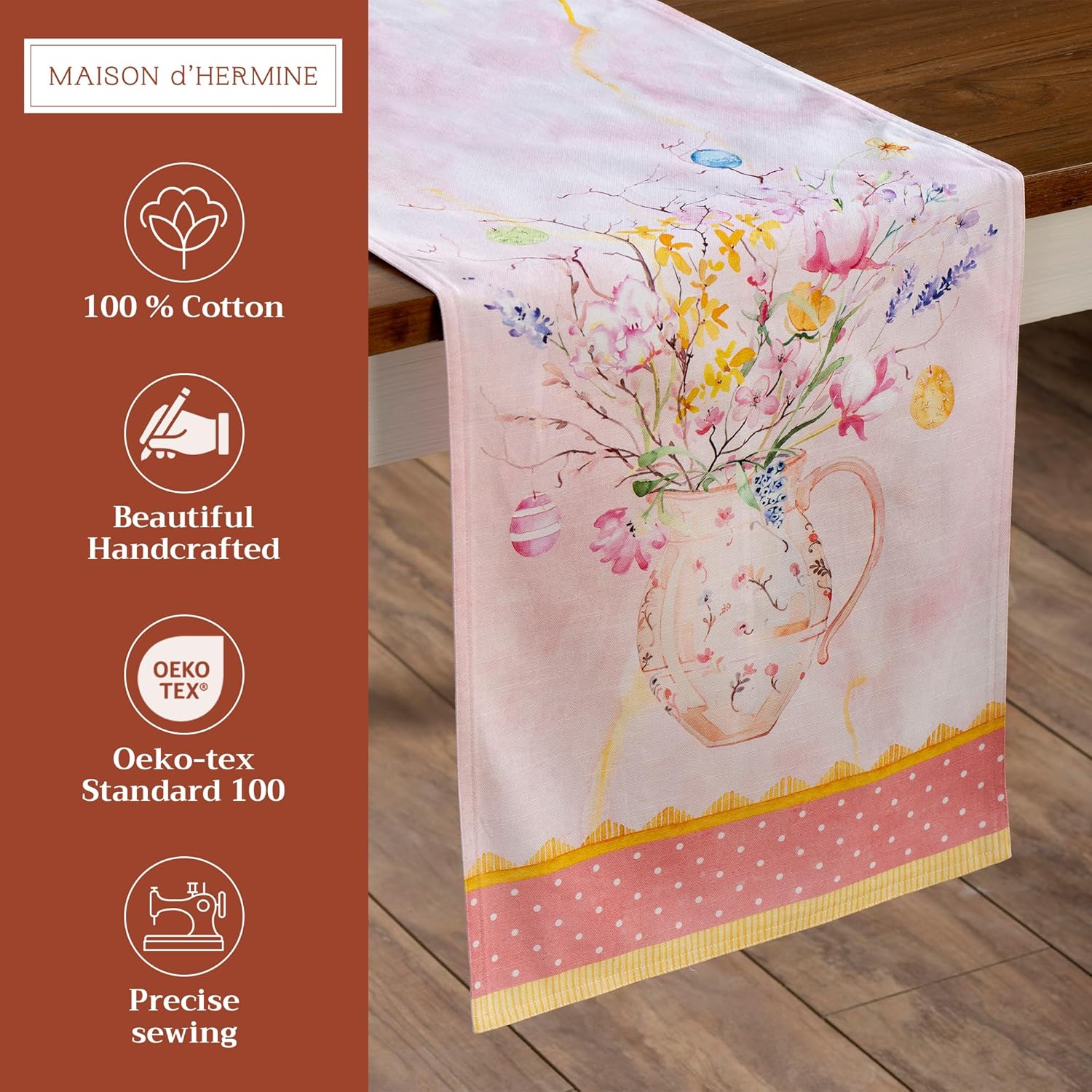 Maison d' Hermine Table Runner 100% Cotton Double Layer Table Runners 72 inches Long Decorative for Kitchen Dining Party Baby Shower Wedding Bridal Shower Spring Summer (Easter Zest, 14.50" x 72")