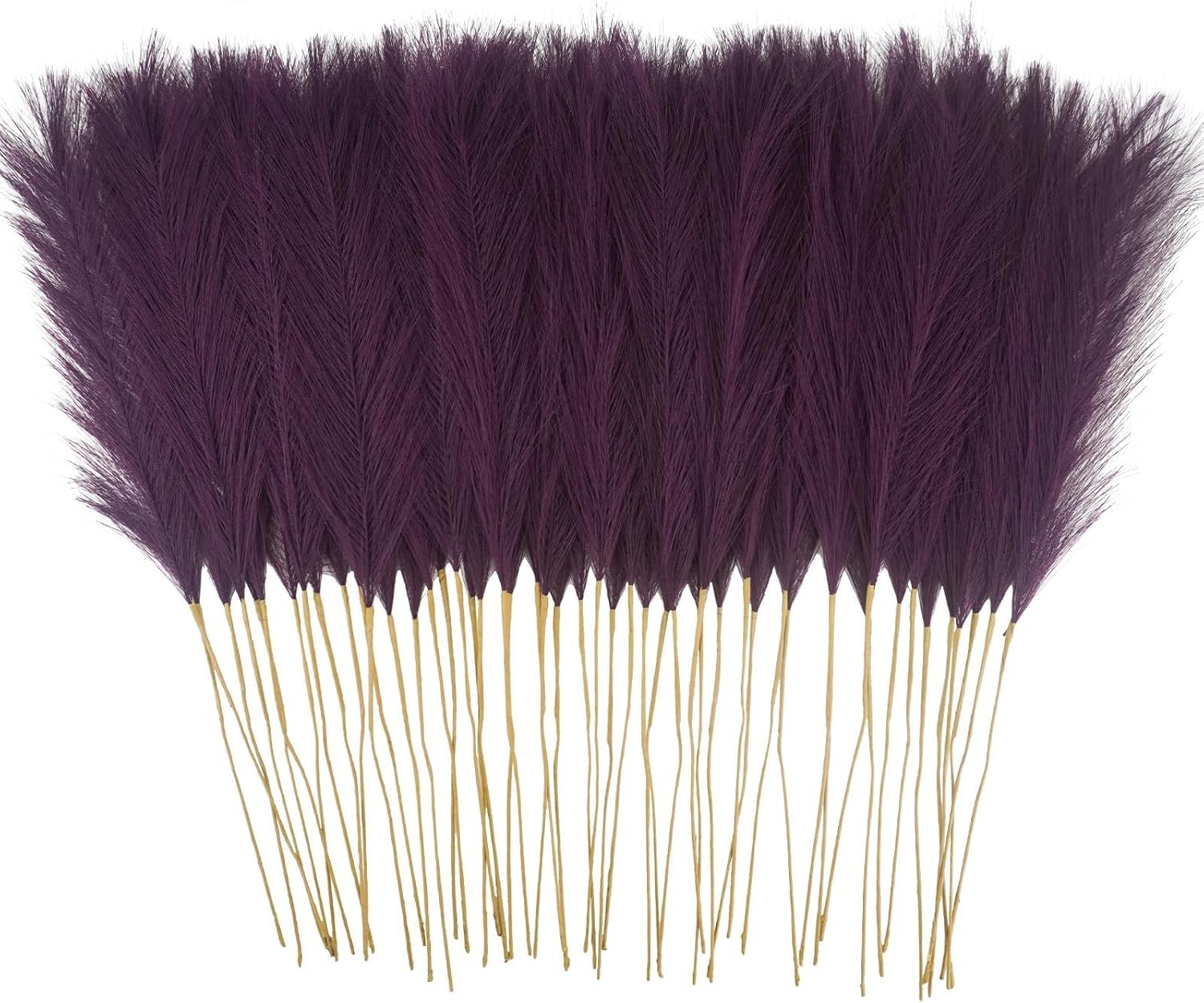 - Purple Pampas Grass Decor: You will get a pack of 50pcs artificial pampass grass, each stem 21.6”, and the heads of each stem is designed you can fluff them up for a fuller look, create a chic minimalist, or Bohemian modern display to complement your existing home arrangement