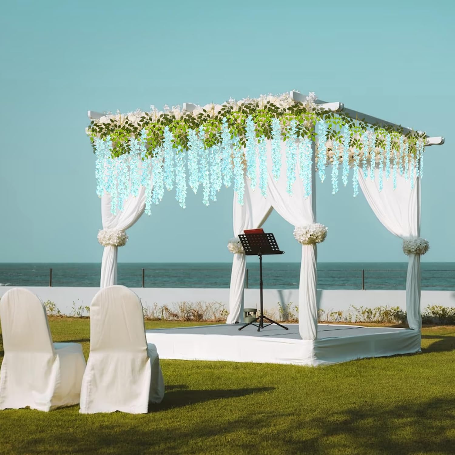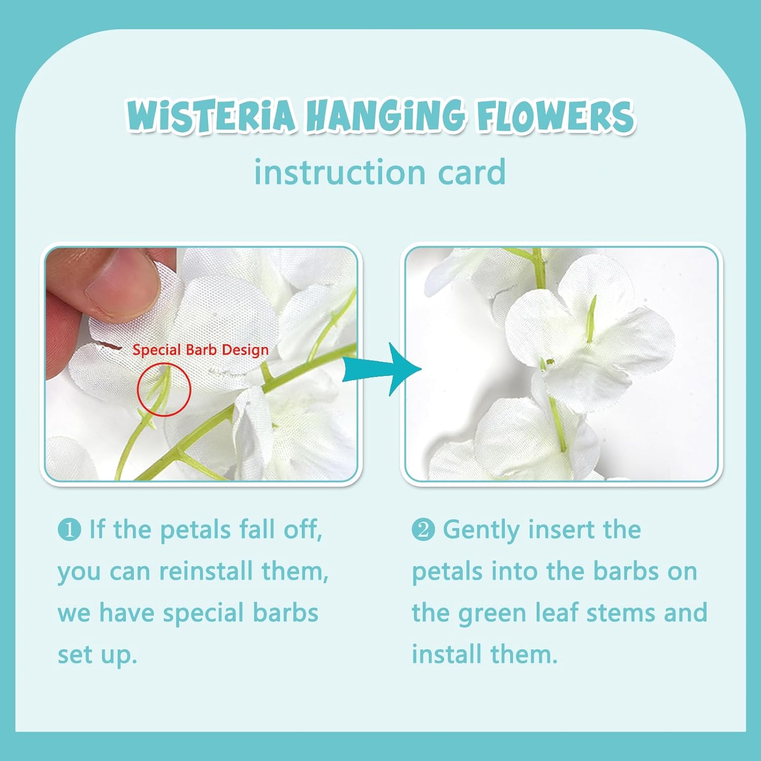 - 【Easy to Install】The teal hanging garland flowers stem are made of durable metal wire and covered with plastic. You can bend the wisteria flower in any shape to satisfy your decoration imagination without damaging it. And the wisteria flower is very easy to install and remove, you can reduce a lot of troubles on installation.