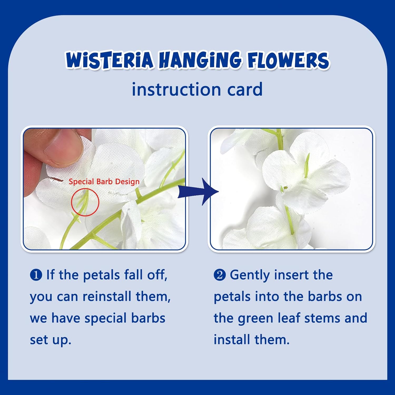 - 【Wisteria Flower Vines】Whether you decorate beautiful royal blue wisteria floral garland indoors or outdoors, you can achieve a magical decorative effect. Decorating the interior makes your home look full of life while decorating the exterior makes the environment more springy.