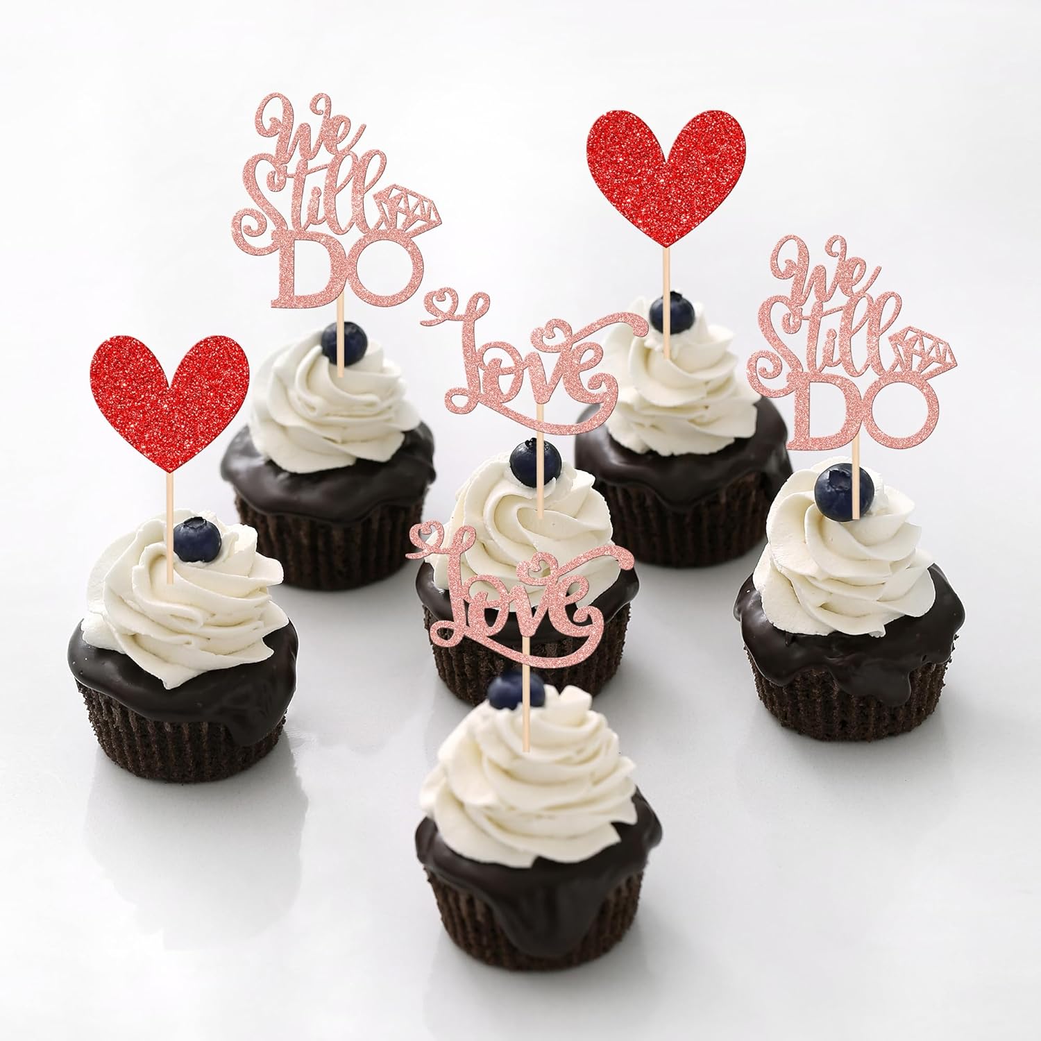 24 PCS We Still Do Cupcake Toppers Glitter Love Heart Bridal Shower Cupcake Picks for Wedding Engagement Bridal Shower Theme Party Cake Decorations Supplies Rose Gold