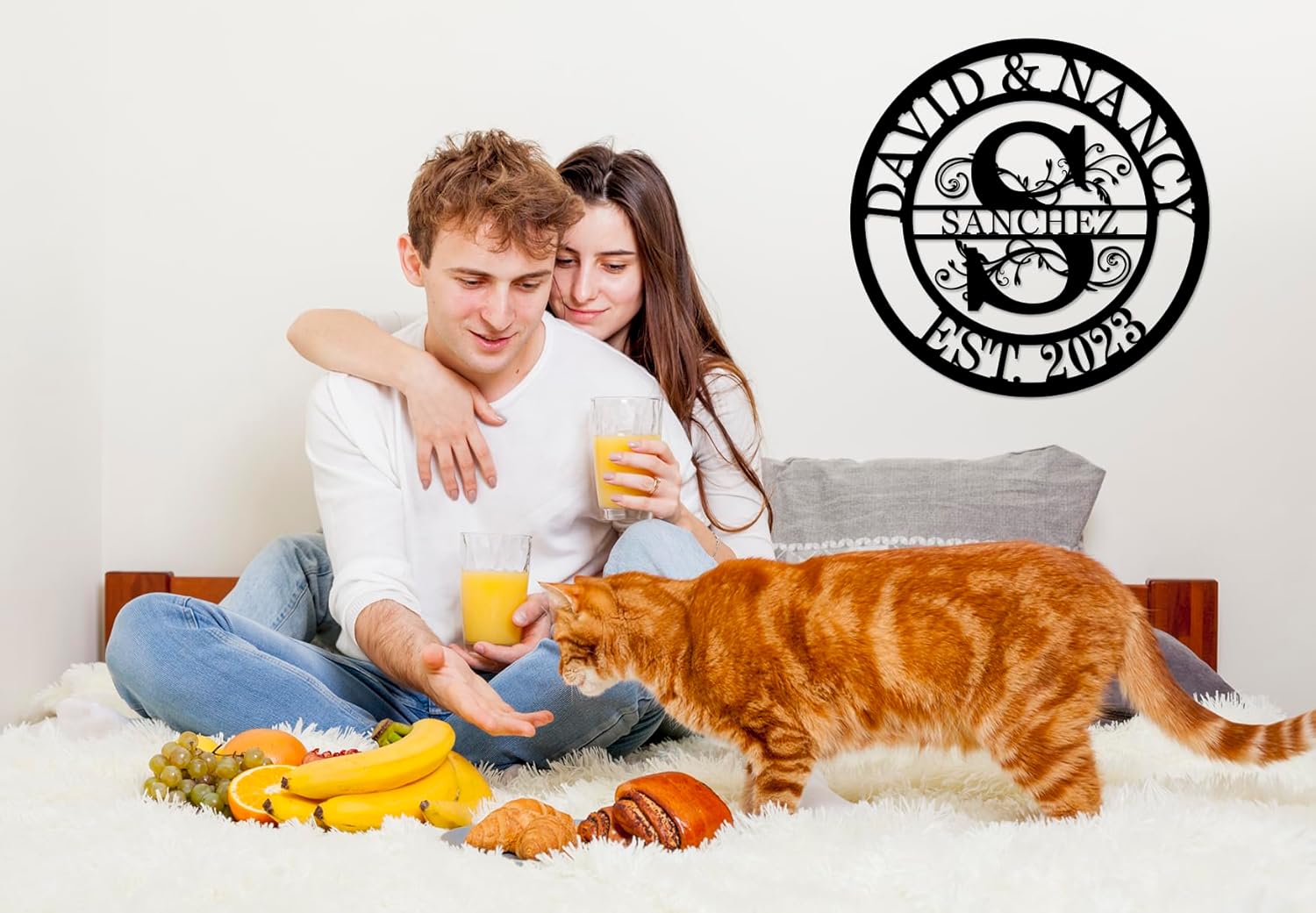 - PERFECT FOR GIFTING: Looking for an extra special wedding gift? Our custom metal name sign personalized with names is an unforgettable gift that will be treasured,Beautiful home decor More than a name sign, it's an exquisite metal wall art home decor sign. This eye-catching piece of art will add a touch of elegance to any room.