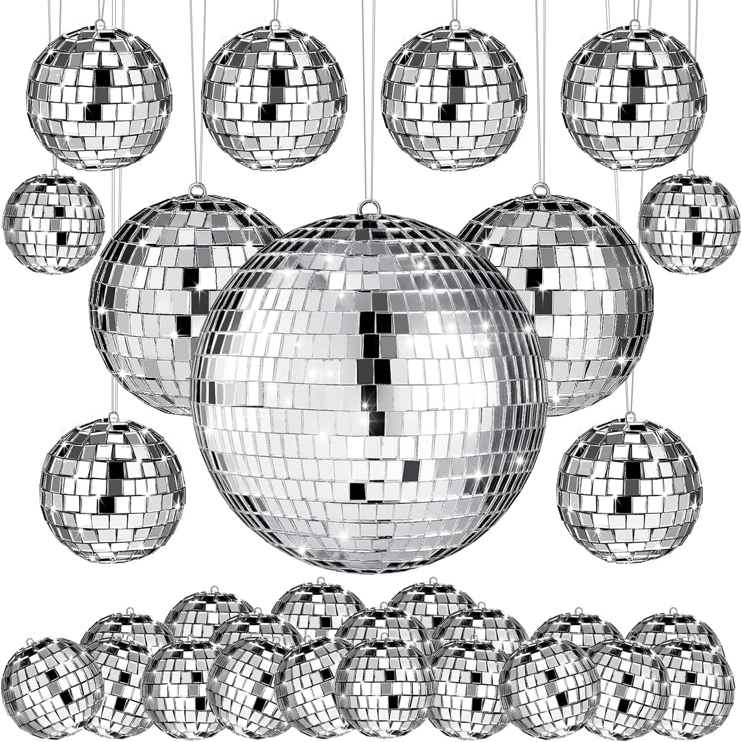 - 【Multiple Size and Sufficiant Quantity】: 54 pcs disco ball consist of large disco ball as well as small disco ball in different quantities, including 1 pcs in 6 inch, 4 pcs in 3.2 inch, 17 pcs in 2 inch and 32 pcs in 1.2 inch, which allow you to match them more freely and meet the needs of various scenes.
