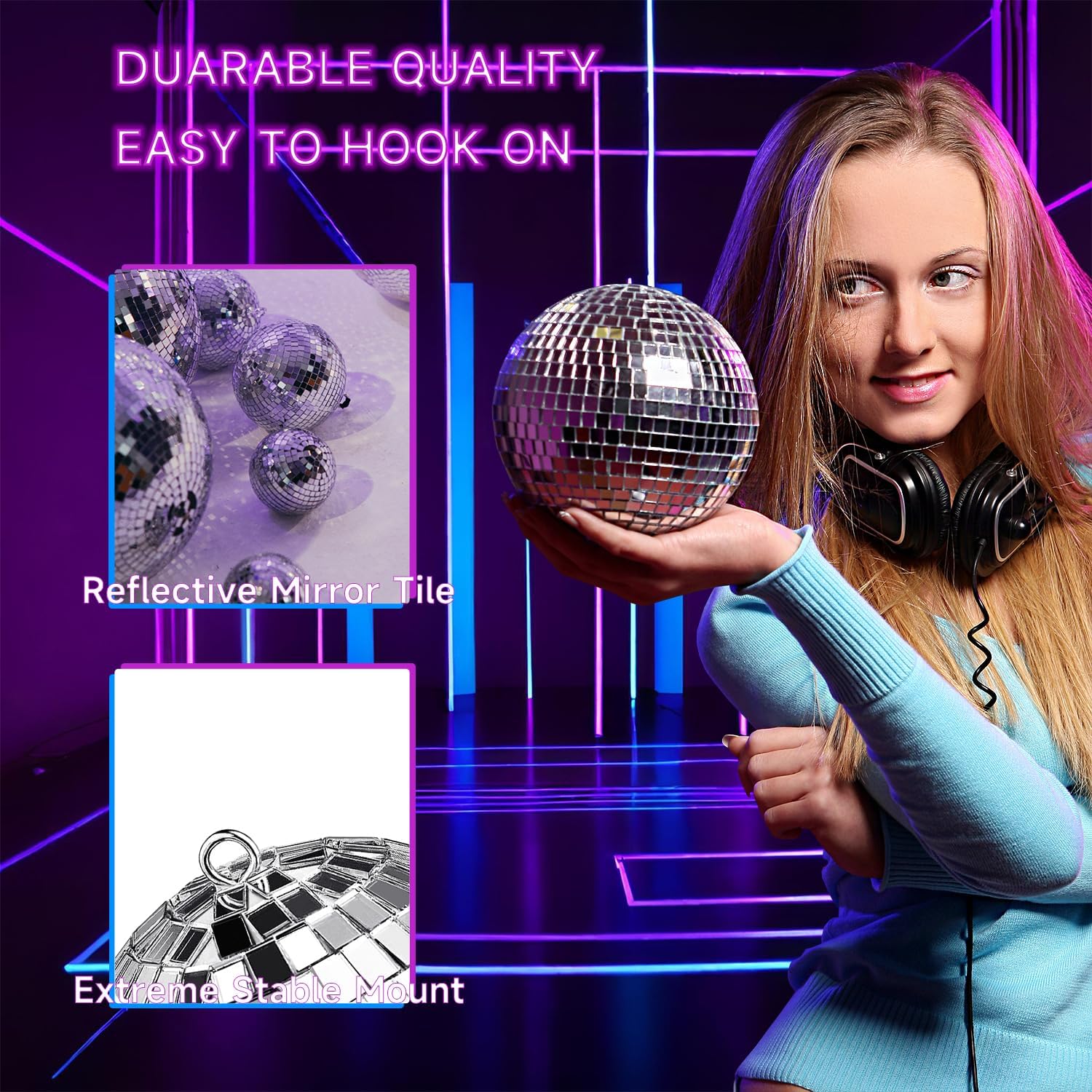 - 【Reflective Mirror Material】: Made of foam material inside, each disco ball is covered with mirror squares on its surface, which reflects bright light. If they are rotated in sunshine or under indoor light, the reflected light will sway accordingly. Dynamic light adds a cheerful atmosphere to the party.