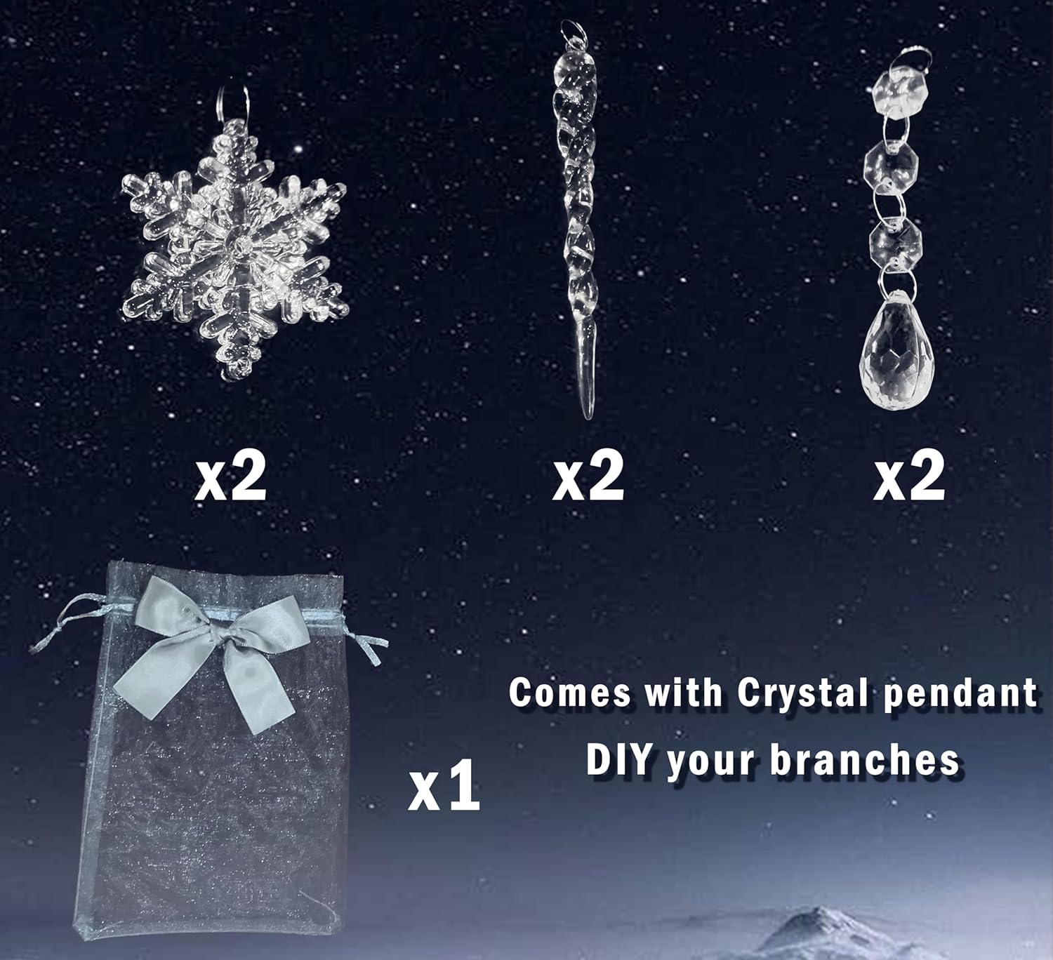- 🎄 Bendable twig branches: These branches are strong but flexible,so you can shape them as desired,also you can hang your little ornaments for holiday-themed decorations or year-round festive use indoor or outdoor.(come with a set of crystal Pendant)