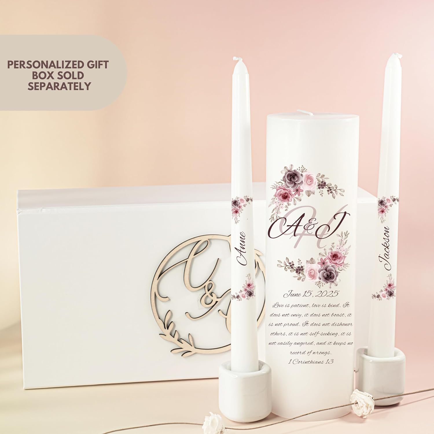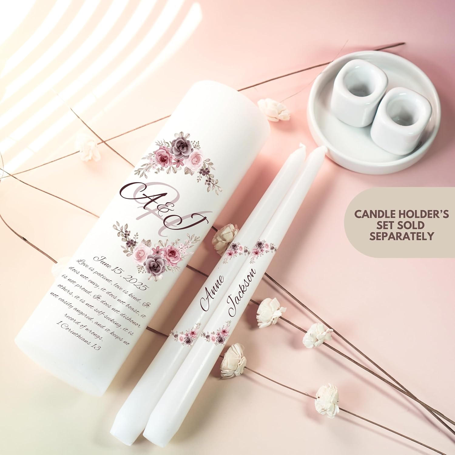 Unity Candles for Wedding, Modern Unity Set, Custom and Personalized Pillar and Taper Candles with Bible Quote, Unscented White Premium Wax, Religious and Wedding Ceremony, Special Events (Clover)