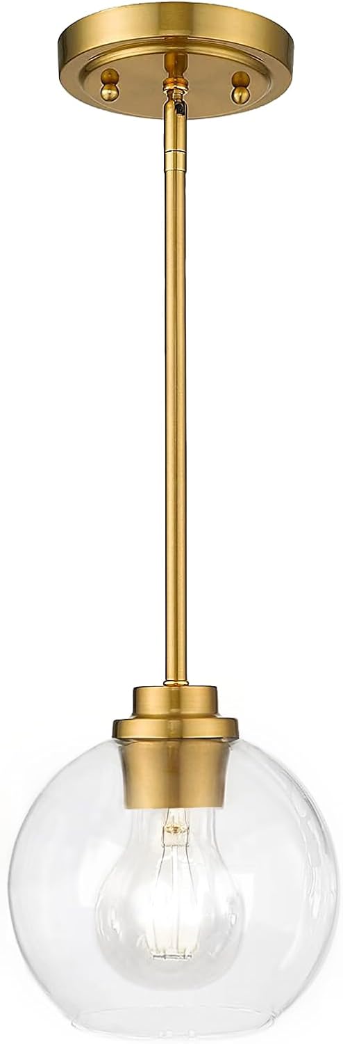 - 【STYLISH DESIGN】These farmhouse pendant lights feature a stunning 7" clear glass globe paired with a luxurious gold metal base that resists fading and corrosion. The downward-casting dome silhouette creates perfect task lighting over your kitchen island, while the transparent glass shade adds modern elegance to any farmhouse, contemporary or traditional decor.