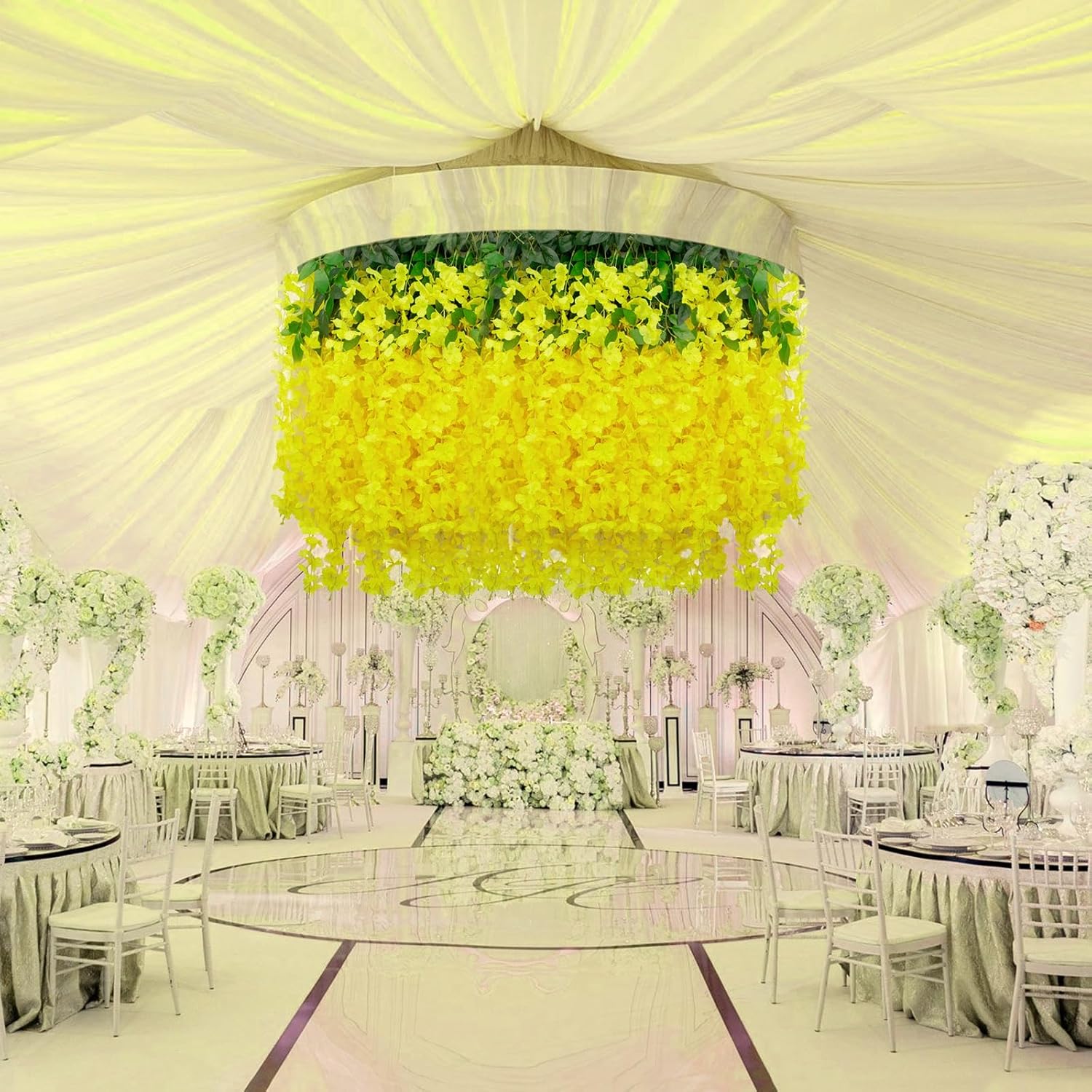 - 【Cycle Used】The yellow artificial wisteria garland is made of silk, the stem is made of metal wire and plastic, and it can be easily bent and recovered, so you can use it many times, very environmentally and cost-effective.