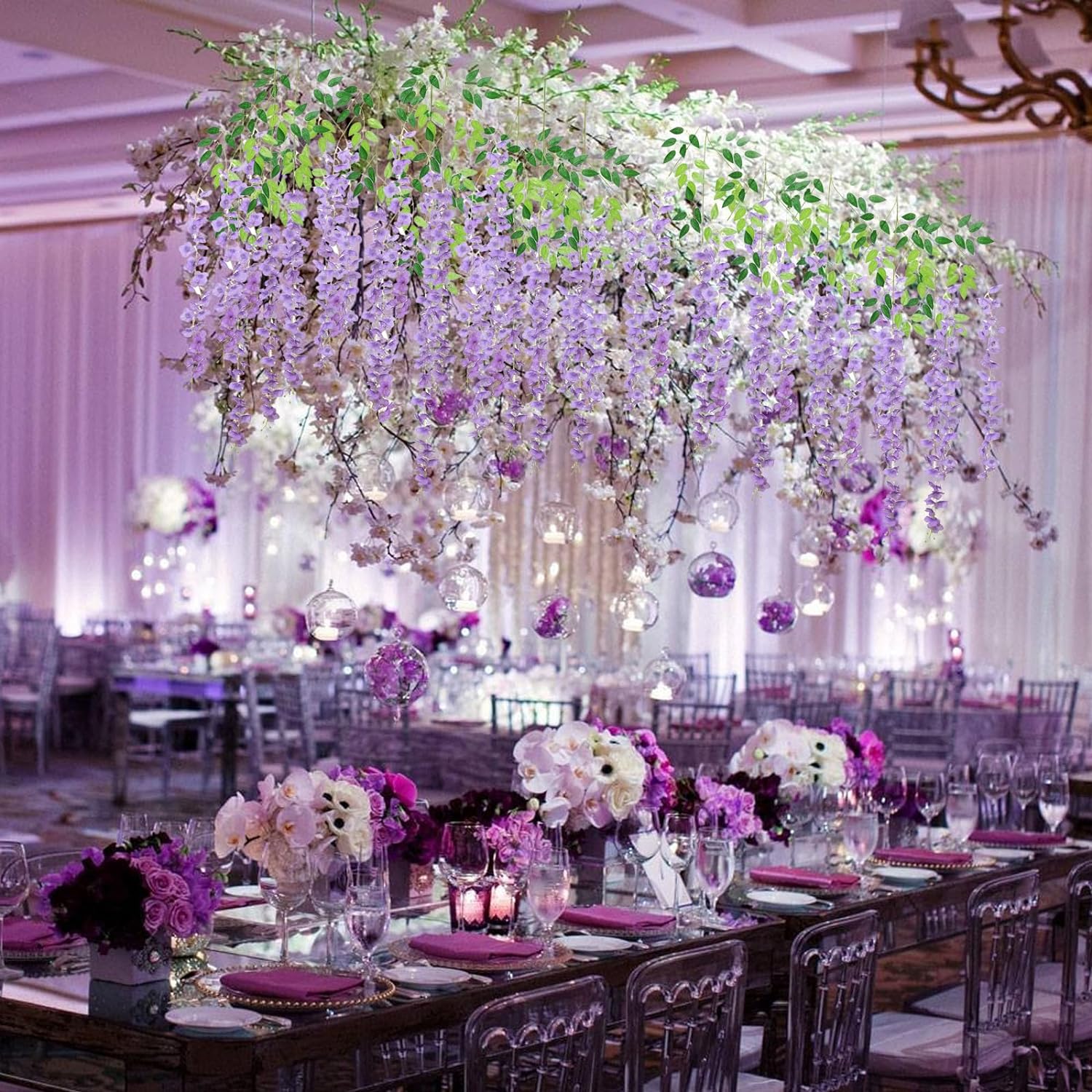 - 【Suitable for A Variety of Scenes】Purple wisteria floral garland have a purely natural pattern design, realistic and natural, suitable for decorating living rooms, bedrooms, study rooms, and windowsill places, so that your living space into the natural atmosphere, become more comfortable. At the same time, they are also suitable for decorating dinner parties, birthday parties, weddings, and other places, to create a warm atmosphere, so that your guests leave a good and unforgettable memory.