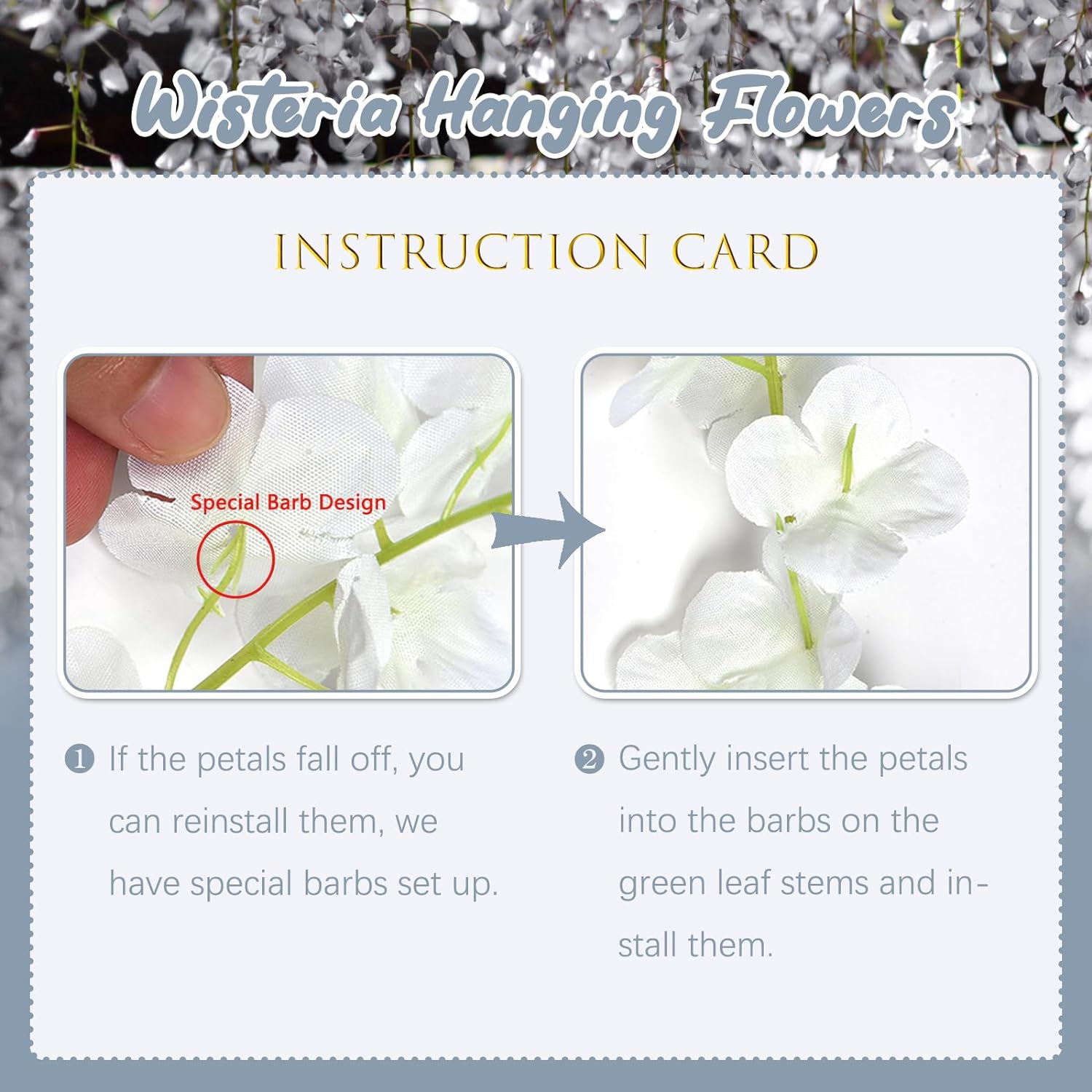 - 【Grey Wisteria Garland】Whether you decorate beautiful grey wisteria hanging flowers indoors or outdoors, you can achieve a magical decorative effect. Decorating the interior makes your home look full of life while decorating the exterior makes the environment more springy.