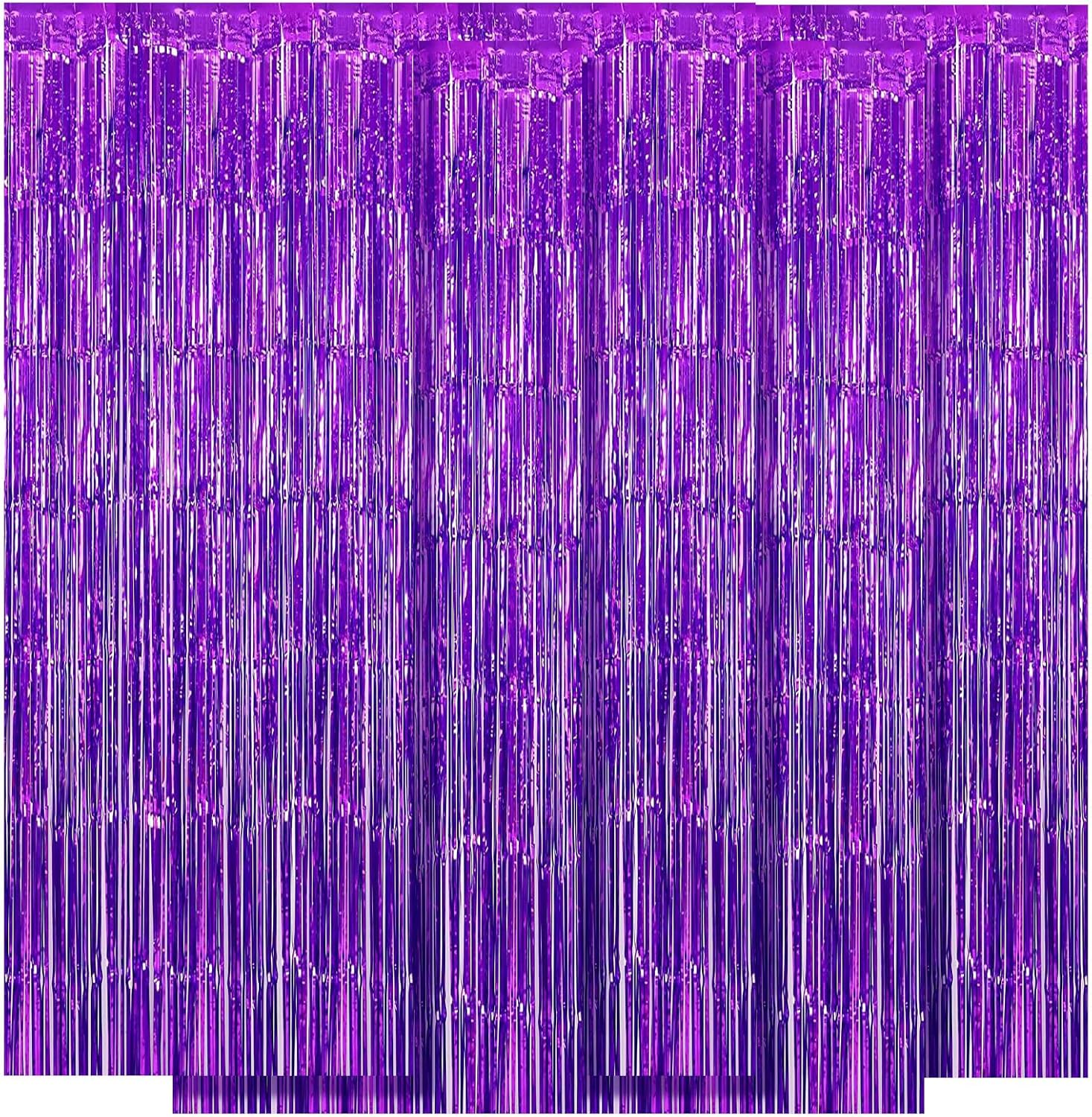 10 Pack Purple Backdrop Curtain 3.2ft x 8.2ft Metallic Tinsel Foil Fringe Curtains Photo Booth Background for Birthday Party Decoration Baby Shower Engagement Wedding Christmas Decoration (Purple)