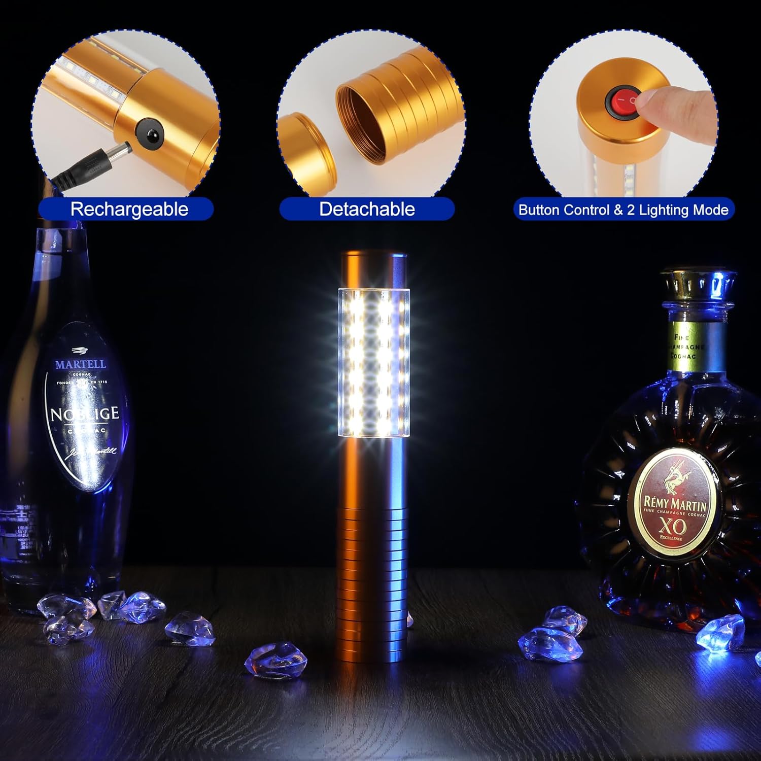 - 【Lightweight and Durable Material】These bottle service sparklers lights are made of premium aluminum alon material, sturdy and lightweight and non-fading, strobe light for parties, not easy to break or deform for long use. The LED bottle service lights can be widely used for various occasions and outdoor activities